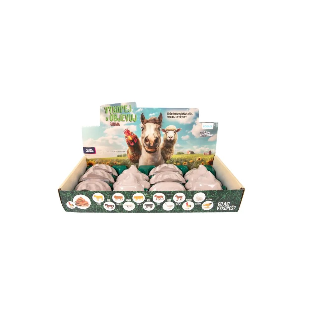 Jedinečná sada Vykopej a objevuj - Farma od Albi Science skrývá 12 sádrových hovínek s překvapením v podobě různých farmářských zvířátek.