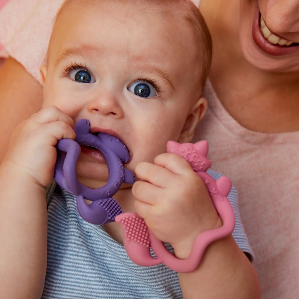 Děti, kterým se prořezávají zoubky, milují žvýkání. Představujeme kousátko na zápěstí oblíbené australské značky b.box. Texturovaný design navržený k uchopení nebo nošení jako náramek pomáhá masírovat bolavé dásně a zároveň podnítit zvědavost dětí.