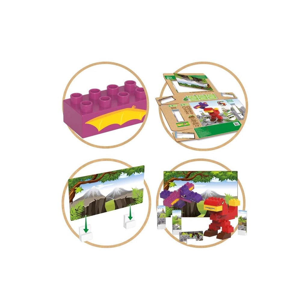 Stoprocentně recyklovatelný obal. Hračky lze kombinovat s kostkami jiných známých značek. Zkombinujte tuto sadu s jinou fantasticky zábavnou sadou, například se stegosaurem, triceratopsem nebo brontosaurem, a zažijte ta nejbláznivější dobrodružství. Zvyšte radost, úroveň dovedností a sebevědomí batolete.