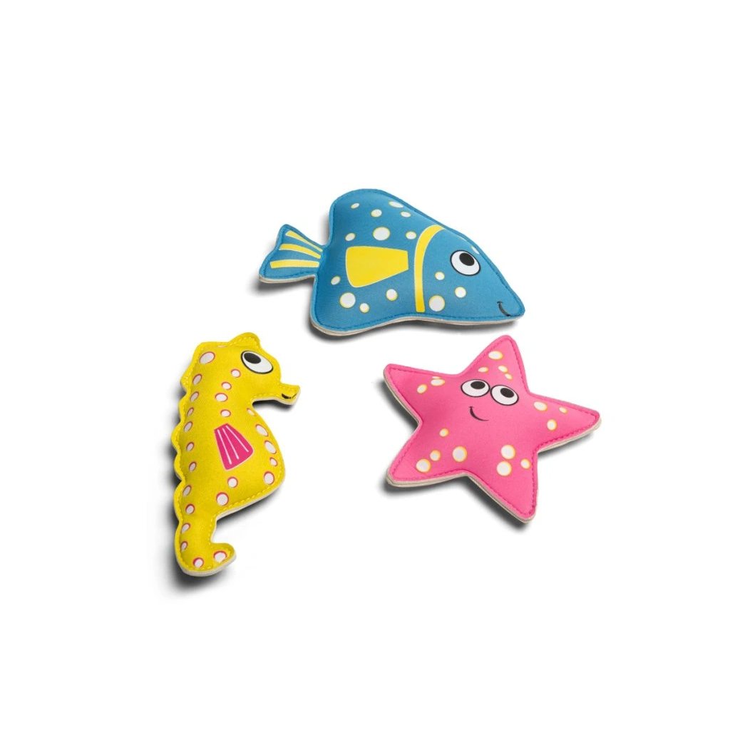 Tato sada tří mořských zvířat je ideální pro vodní hry! Vyrobena z neoprenu a naplněna pískem, zvířata snadno klesnou ke dnu. Skvělá zábava bez chytrých telefonů pro děti od 6 let.