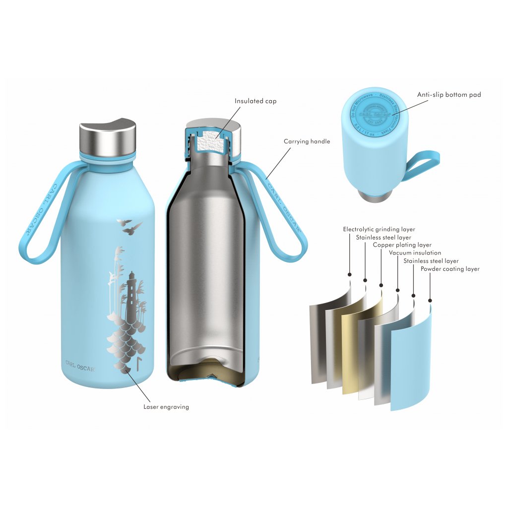 Carl Oscar se zaměřuje na výrobu cenově dostupných a funkčních vakuových lahví, nádob, svačinových boxů a lahví na vodu s důrazem na opakované použití a trvanlivost. Všechny produkty jsou inspirovány skutečným životem a skutečnými lidmi. Nabídka zahrnuje barevné kolekce pro děti s veselými zvířecími motivy, stejně jako elegantní a praktické produkty pro dospělé.