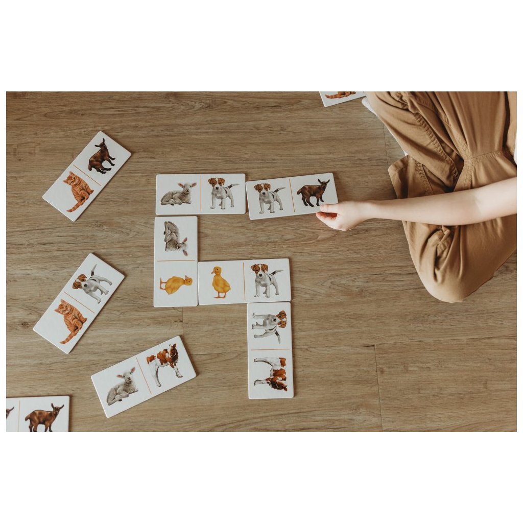 Obrázky mají reálné ilustrace a jsou skvělé jako rozvíjející hračka jak pro malé od prvních puzzlí, tak pro větší. Puzzle i domino jsou vyrobeny z tvrdého kartonu a děti s nimi tak krásně trénují úchop, jemnou motoriku a menší děti se učí poznávat zvířátka z reálných obrázků.