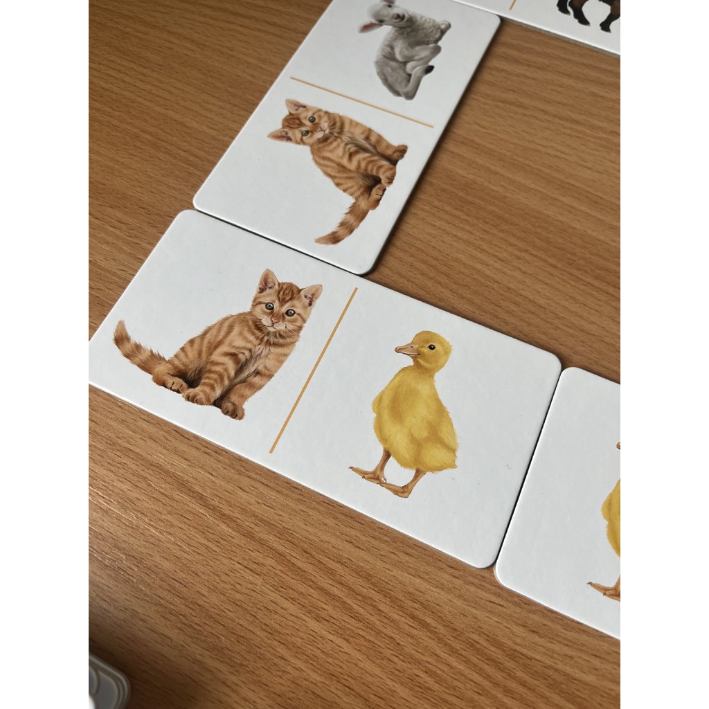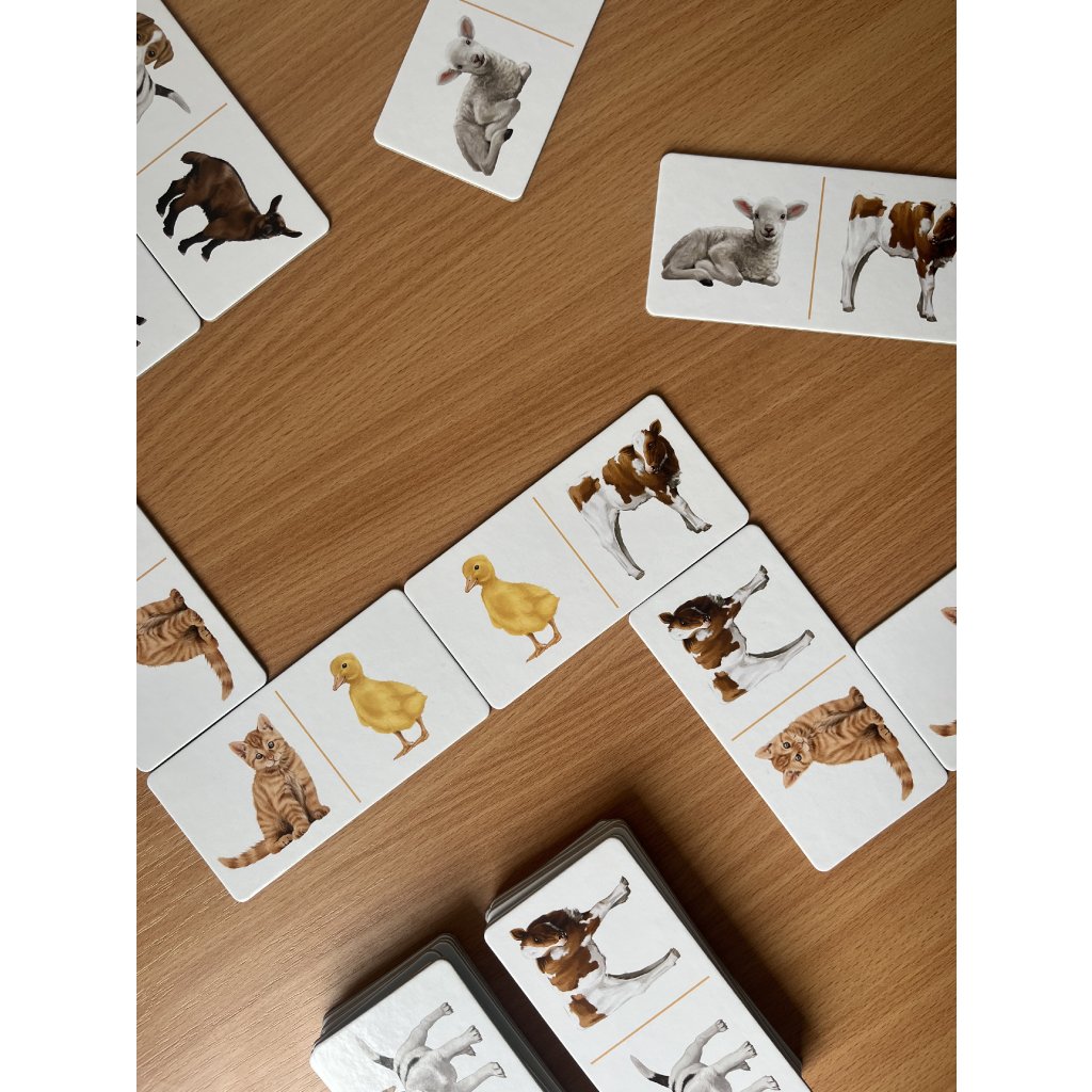 Autorské oboustranné domino od Chytré opičky, které děti nadchne svými krásnými ilustracemi mláďátek ze statku a zároveň je naučí počítat hravou formou.