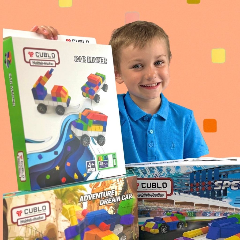 Cublo Car Maker – 45 magnetických dílků pro stavění osobních aut, vozíků i libovolných kreativních modelů. Ideální pro rozvoj motoriky, logiky a prostorového uvažování, jako doplněk i samostatná hra — vždy plná hodin zábavy.