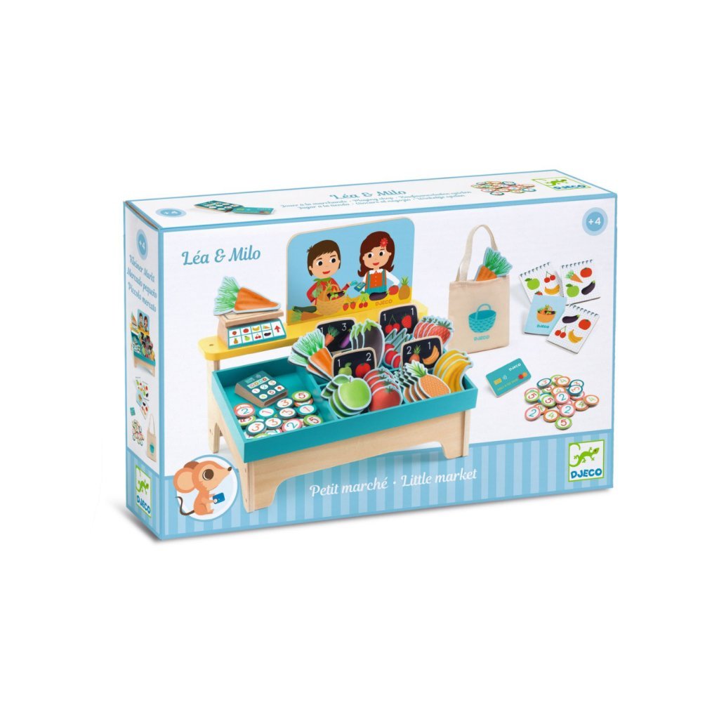 Hravá sada pro děti, které si rády hrají na obchod. Jeden je prodavač – připraví zboží na stánek, zváží ho na vahách, spočítá účet a vybere platbu. Druhý je zákazník – může nakoupit podle vlastního výběru nebo podle tematických nákupních seznamů a zaplatit mincemi či kartou. Díky kompaktnímu rozměru si děti mohou obchod zahrát i vsedě u stolu.