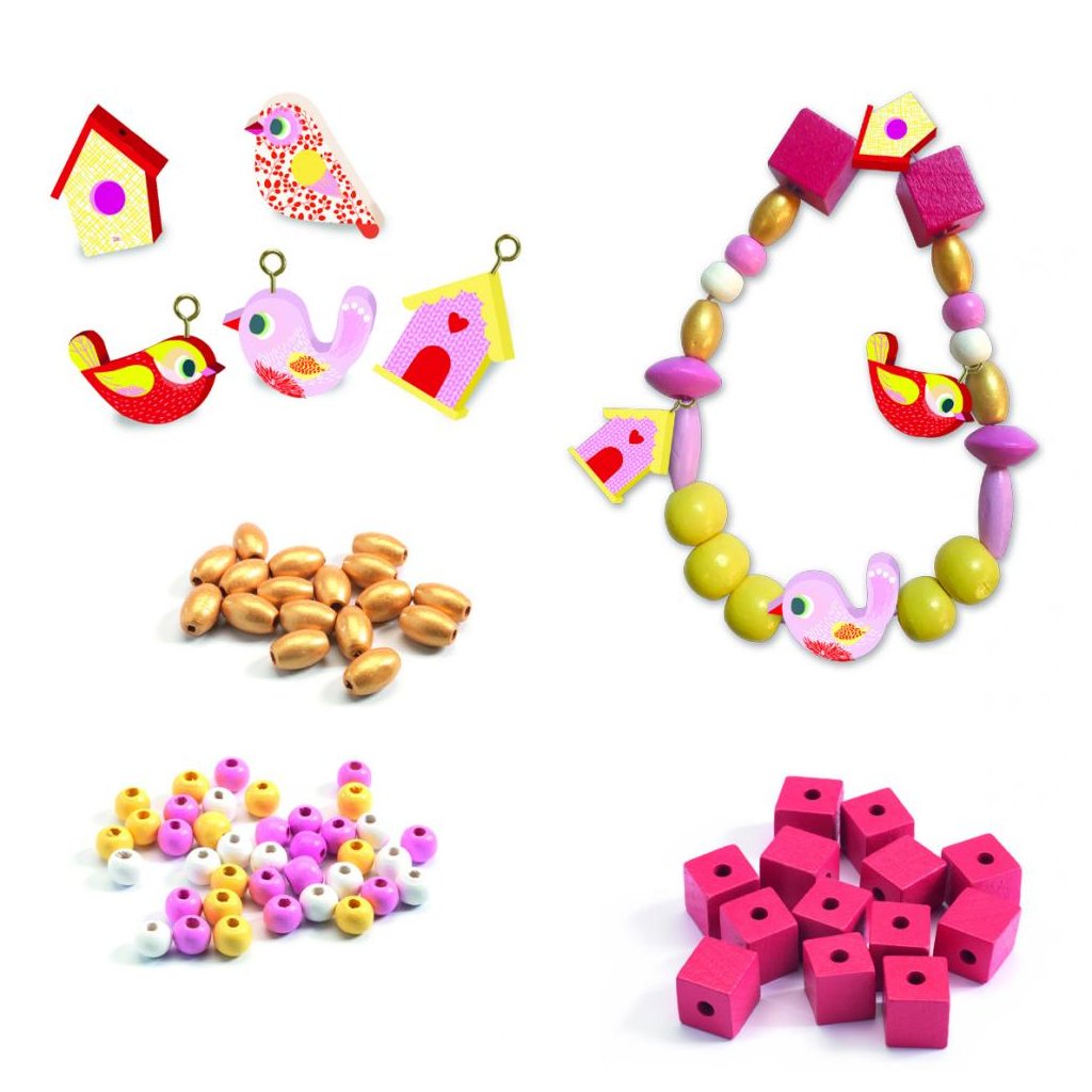 Sada dřevěných korálků - Djeco - Ptáčci