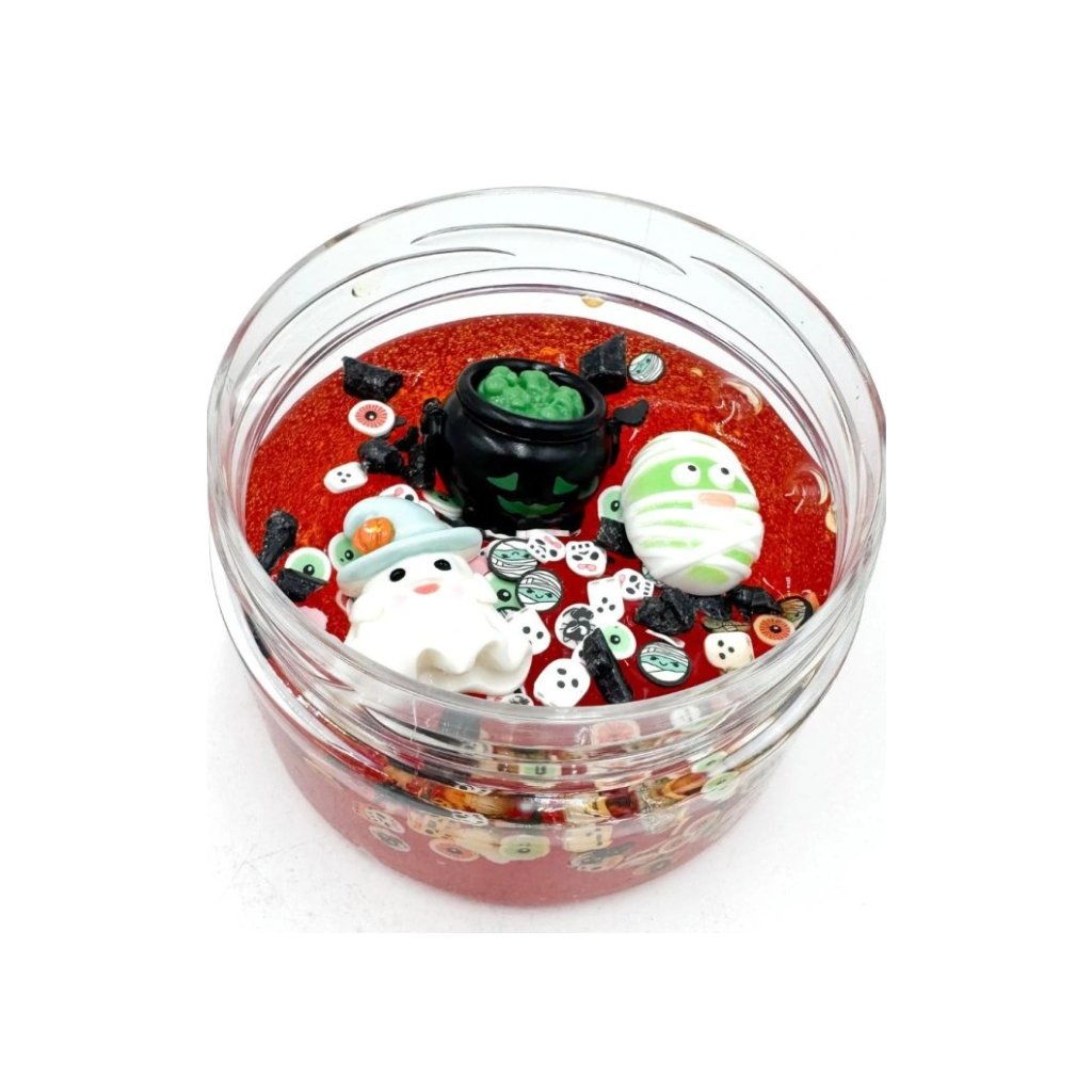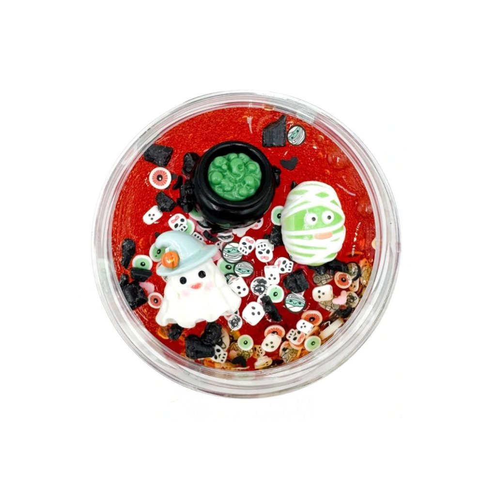 150g gelového slizu, konfety, 3ks dekorace: kotlík, duch, mumie