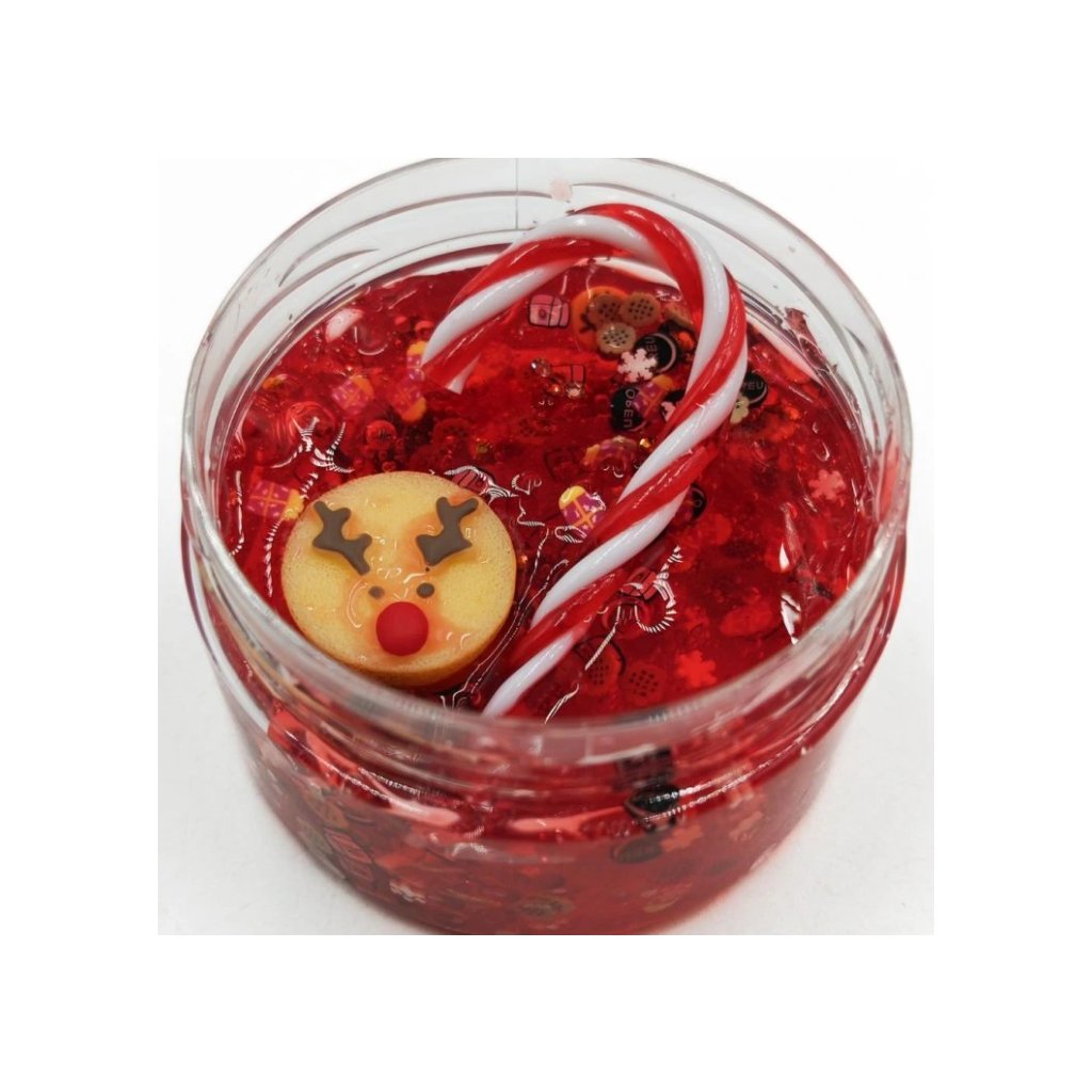 150g gelového slizu, konfety, třpytky, plastové kuličky, 2 ks dekorace - vánočního cukroví, cukrová hůlka.
