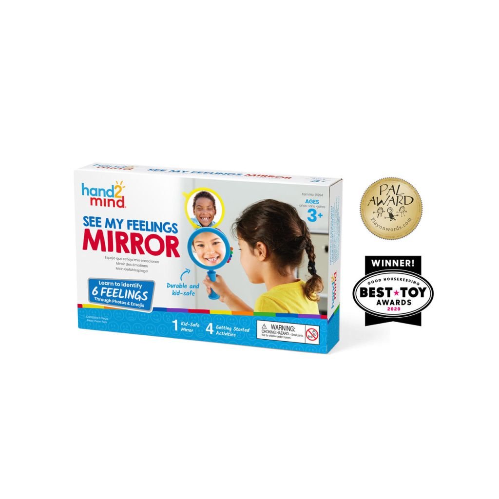 Edukační zrcadlo See My Feelings Mirror od značky Hand2Mind je vzdělávací pomůcka určená pro rozvoj emoční inteligence, sebereflexe a sociálních dovedností u dětí. Pomáhá dětem pochopit, že emoce se neodehrávají jen „uvnitř“, ale mají i viditelný projev na obličeji.