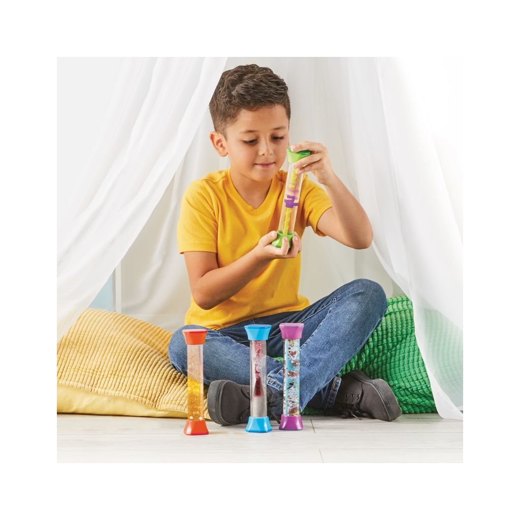 Každý tubus v sadě nabízí jiný smyslový zážitek – jiný pohyb, rychlost, barvy nebo strukturu. Díky tomu si dítě může vybrat ten, který mu v daný moment nejvíce vyhovuje. To je velmi důležité zejména pro děti, které jsou citlivé na podněty nebo potřebují regulovat pozornost a emoce.