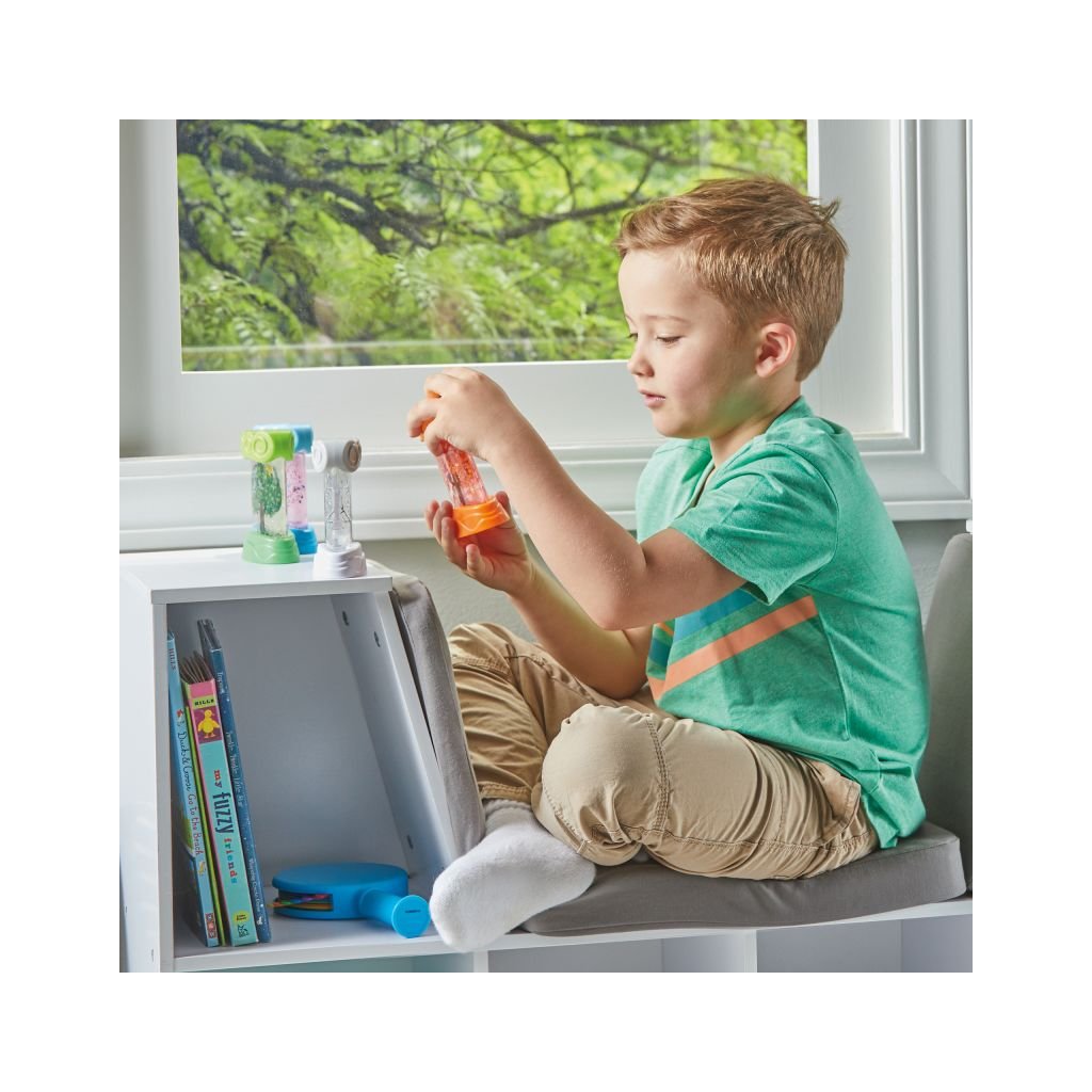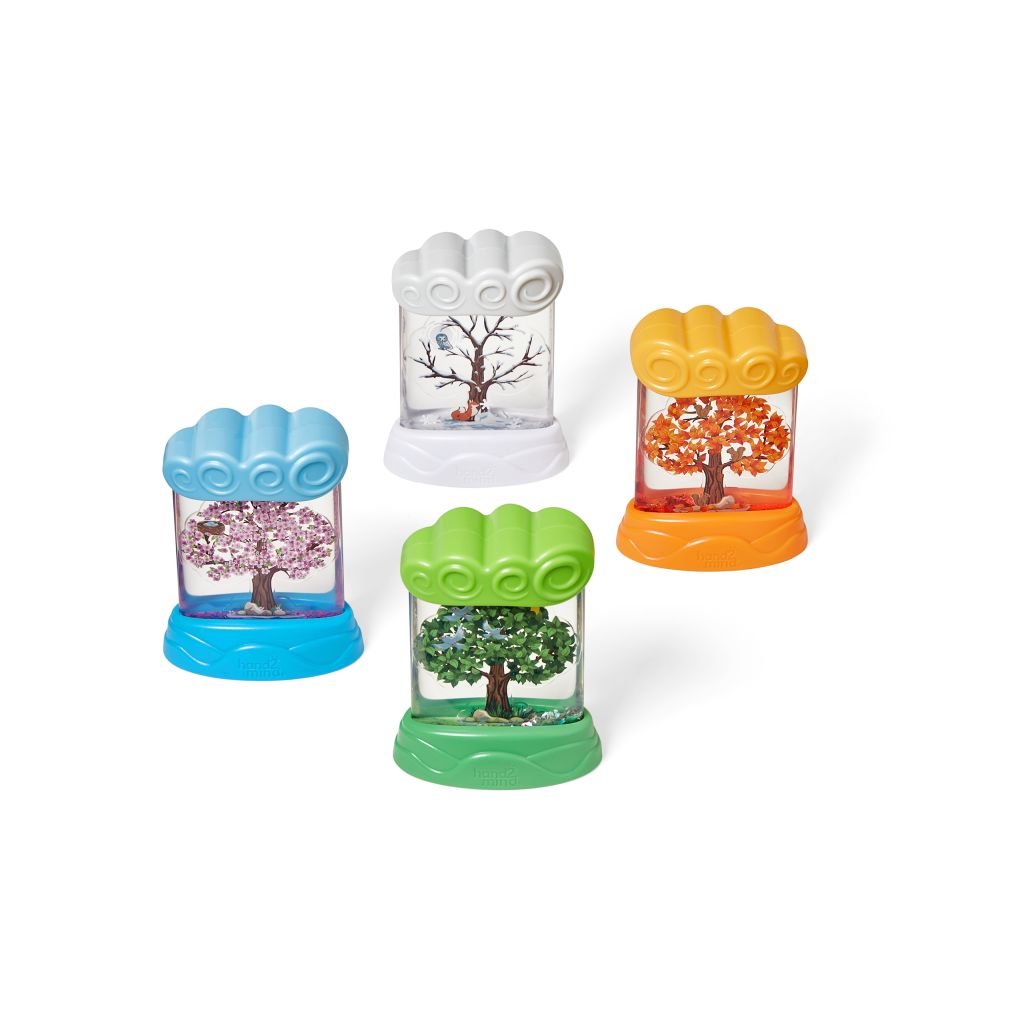 Senzorické tubusy Roční období od značky Hand2Mind jsou navržené tak, aby dětem nabídly klidnou smyslovou zkušenost spojenou s učením o světě kolem nás. Každý tubus reprezentuje jedno roční období a pomocí pohybujících se částic, barev a tematických prvků ukazuje, jak se příroda během roku mění.