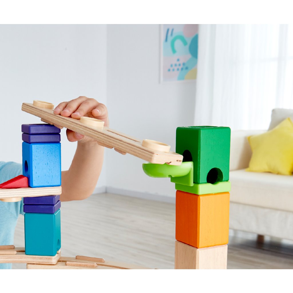 Tato originální kuličková dráha je skvělým dárkem pro děti, které milují stavění a akční zábavu. Díky chytře navrženým spirálám kuličky zrychlují, zpomalují a dramaticky mění směr. Průhledné části umožňují sledovat každý pohyb kuličky, což děti baví a motivuje ke zkoumání nových tras. Všechny díly do sebe perfektně zapadají, což podporuje přesnost, trpělivost a konstrukční myšlení.