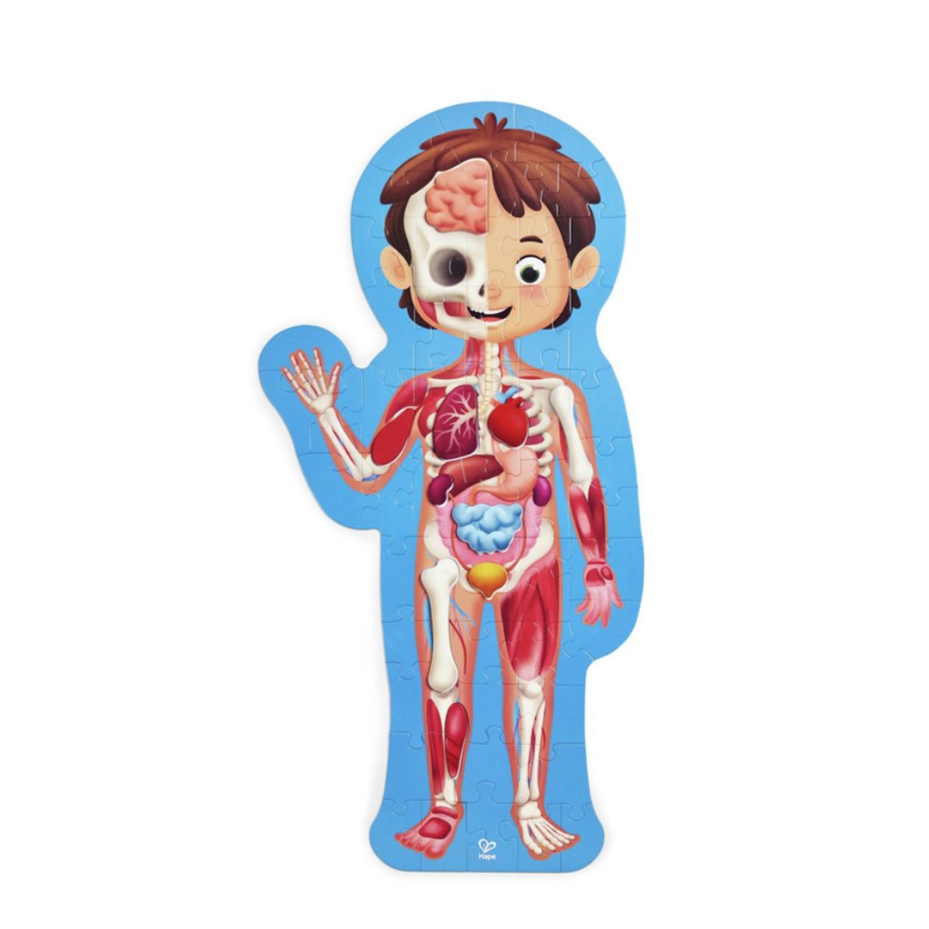 Velkoformátové puzzle lidského těla nabízí dětem jedinečnou možnost učit se hrou. Kromě klasického skládání obsahuje i 3D modely vnitřních orgánů, které podporují hmatové vnímání a pomáhají pochopit, jak lidské tělo funguje. Součástí je také oboustranný plakát s popisem tělesných částí v 11 jazycích, který rozvíjí jazykové dovednosti i zvídavost.