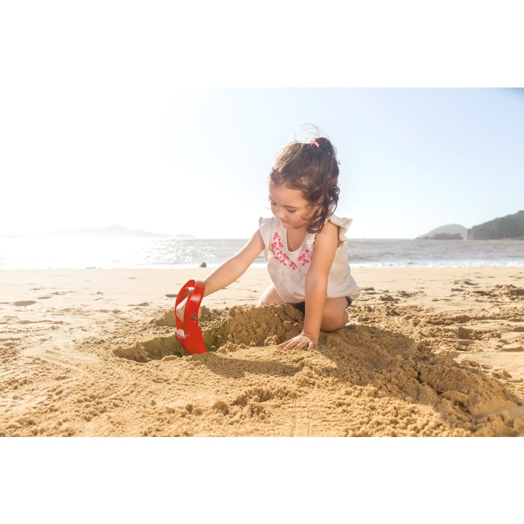 Malí stavitelé si na pískovišti přijdou na své! Červený bagr od HAPE je praktická a hravá pomůcka, se kterou děti mohou snadno kopat, nabírat písek a tvořit různé stavby či tvary. Díky ergonomickému designu se pohodlně drží i v malých dětských ručičkách a podporuje tak rozvoj jemné motoriky i fantazie.