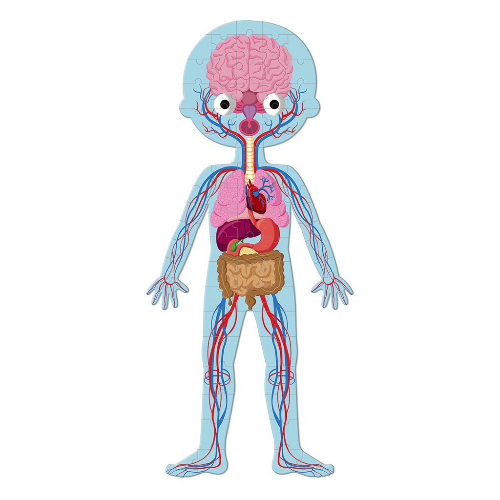 Nádherné vzdělávací puzzle s motivem Lidského těla – tělo, orgány a kostra. Úžasně hravé poznávání lidského těla pro zvědavé školáky! Děti skládají puzzle a zároveň se učí jednotlivé části a soustavy lidského těla. Poskládat mohou TĚLO, KOSTRU a ORGÁNY. Tyto kartonové puzzle s 50-75-100 ks dílky a 4 kartami soustav lidského organismu okouzlí a zabaví nejedno malé dítě.