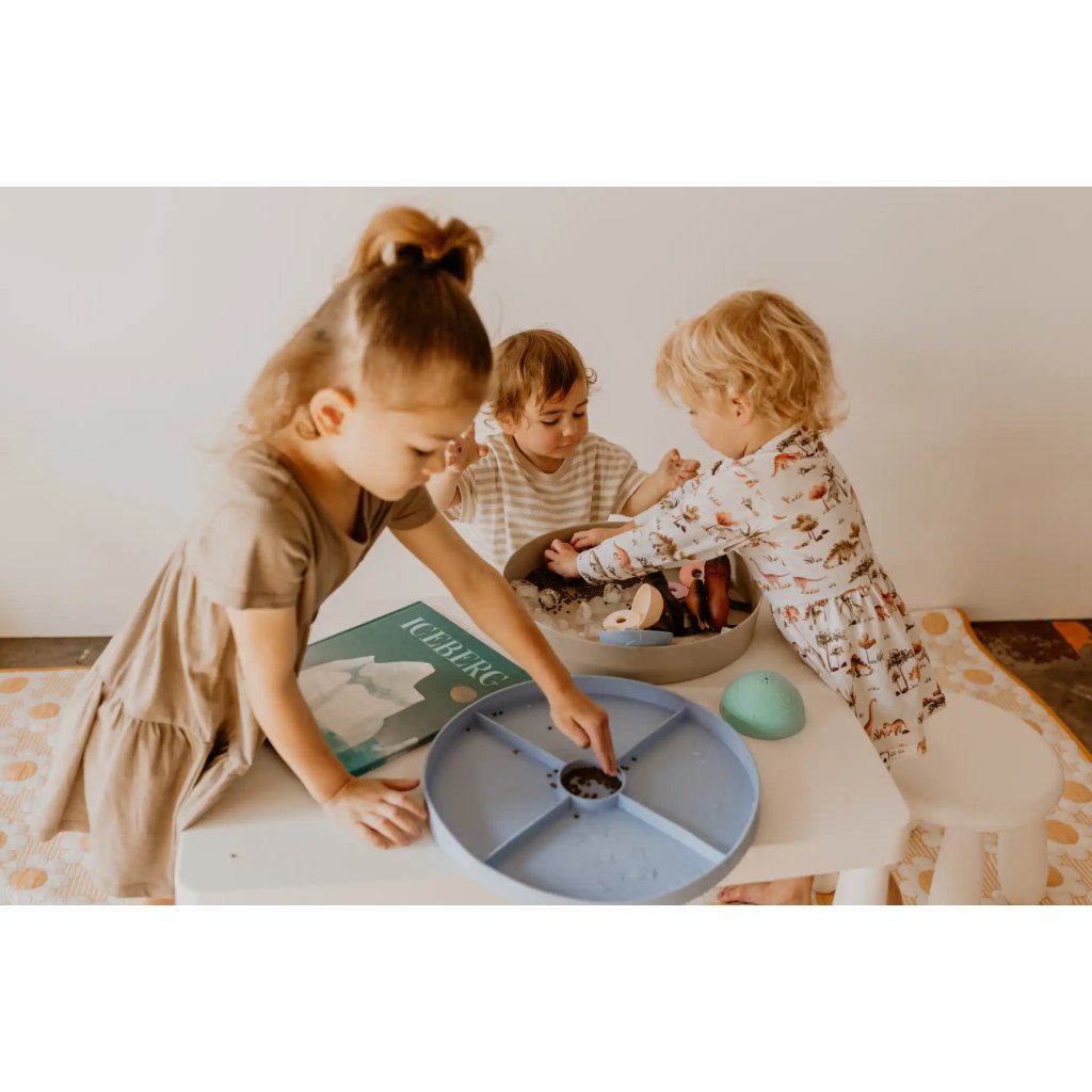 Dvě možnosti hraní v jednom. Vytvořte si mini svět na plastovém podstavci nebo použijte silikonové víko pro další možnosti hraní. Ať už jde o kreativní, smyslové nebo imaginární hry, Play Tray senzorický tác je navržen tak, aby inspiroval k nekonečné zábavě a rozvoji jemné motoriky. A když je čas hraní uklidit, stačí jednoduše nasadit silikonové víko a je uklizeno.