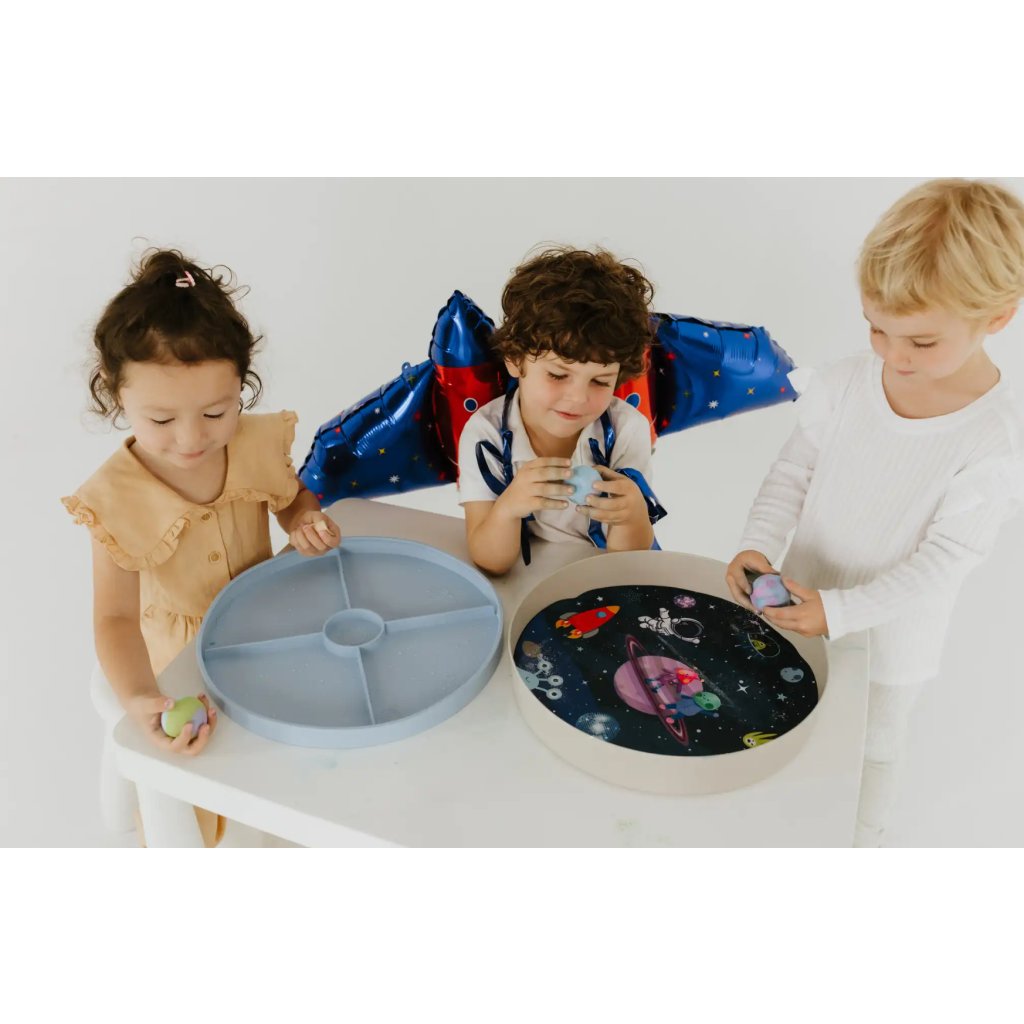 Pokud hledáte vhodnou podložku či třídící tác pro smyslové hraní vašich dětí, australská značka Jellystone Designs má pro vás třídící tác se silikonovým víkem.