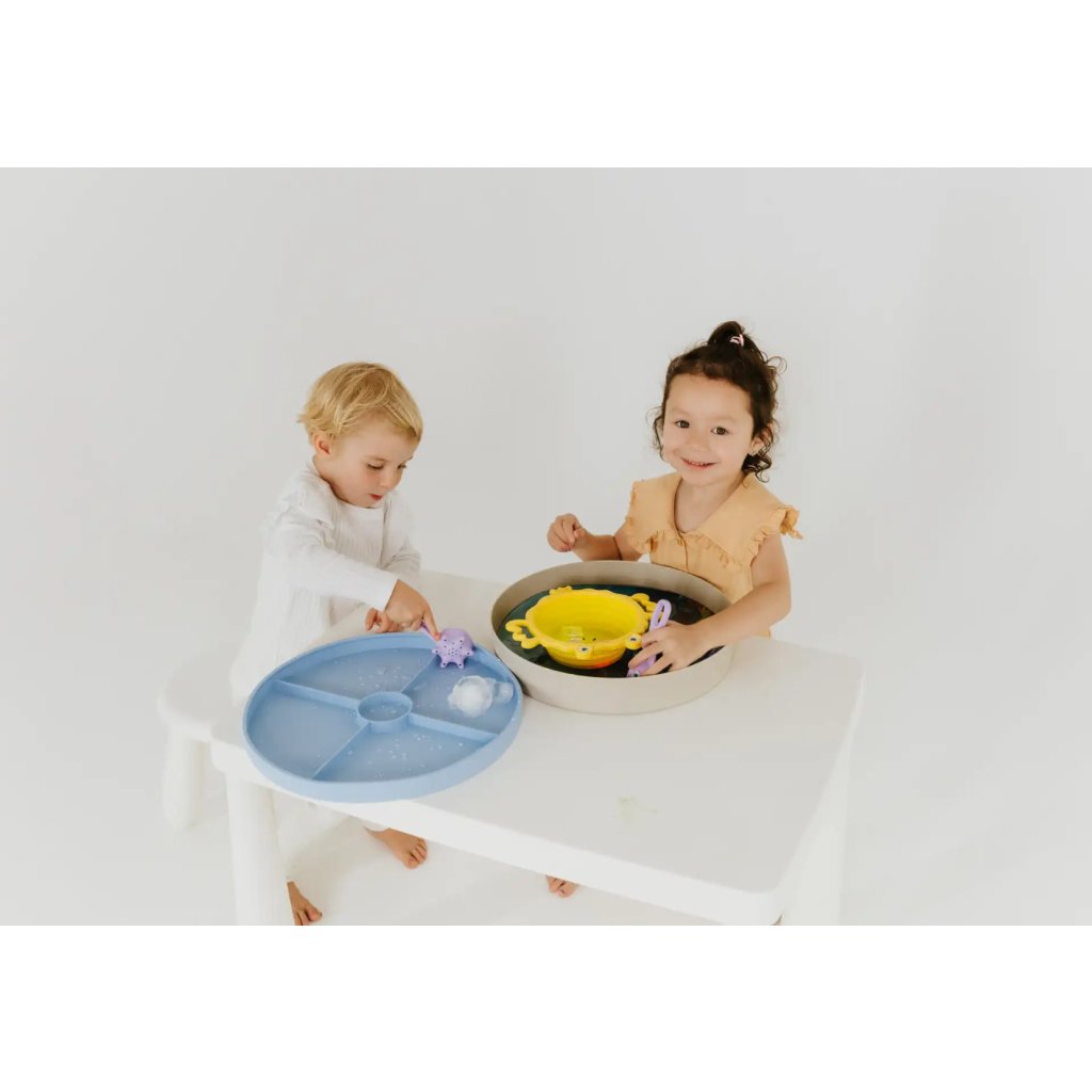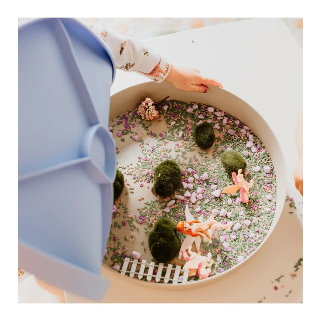 Dvě možnosti hraní v jednom. Vytvořte si mini svět na plastovém podstavci nebo použijte silikonové víko pro další možnosti hraní. Ať už jde o kreativní, smyslové nebo imaginární hry, Play Tray senzorický tác je navržen tak, aby inspiroval k nekonečné zábavě a rozvoji jemné motoriky. A když je čas hraní uklidit, stačí jednoduše nasadit silikonové víko a je uklizeno.