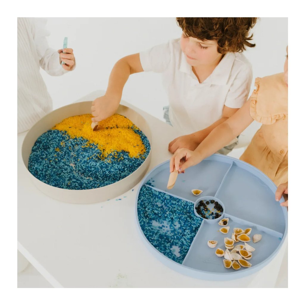 Třídící tác Play Tray je skvělou volbou a nabídne nekonečné možnosti smyslového hraní a rozvoji představivosti vašich dětí. Tato montessori pomůcka je ideální doplněk pro smyslovou hru, děti mohou využít tác ke hře s barevnou rýží, třídění barevné cizrny či jiných předmětů, počítání a uložení různých výukových materiálů.