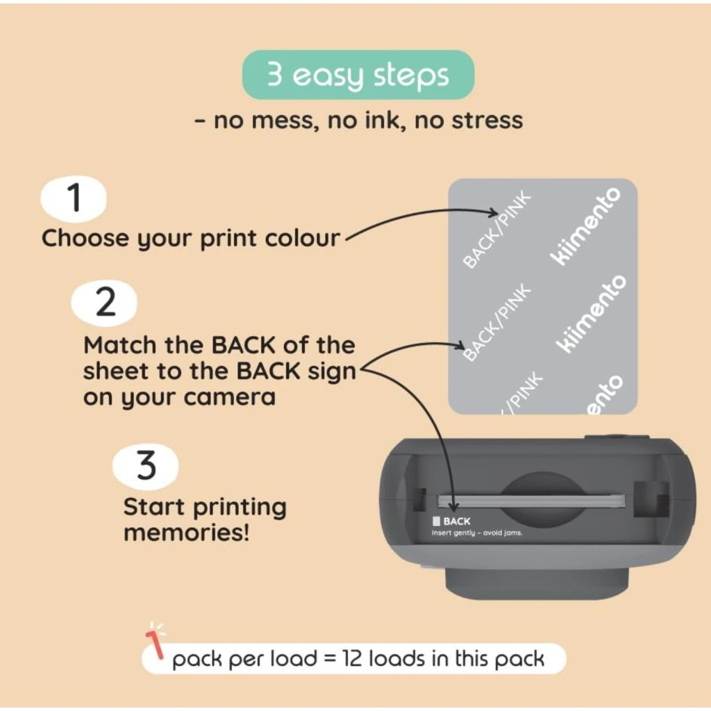 Kiimento Model P2 Print Pack je náhradní papír určený pro dětský fotoaparát s okamžitým tiskem. Díky termální technologii není potřeba žádný inkoust – fotografie se vytisknou během několika sekund přímo z fotoaparátu.