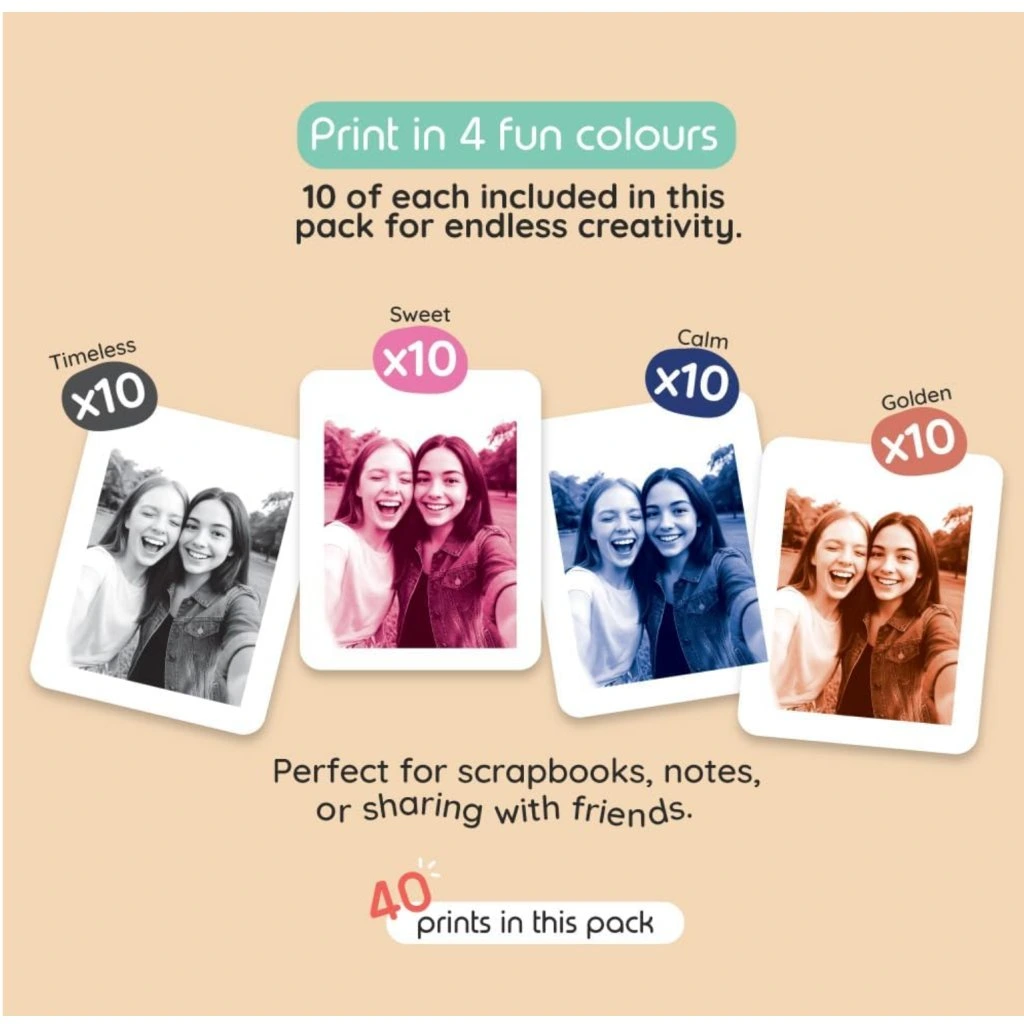 Kiimento Model P2 Print Pack je originální termální papír pro dětský fotoaparát Kiimento Print Pro Camera P2, který umožňuje okamžitý tisk fotografií bez inkoustu. Děti si tak mohou snadno vytvářet vlastní vzpomínky, alba i kreativní projekty.