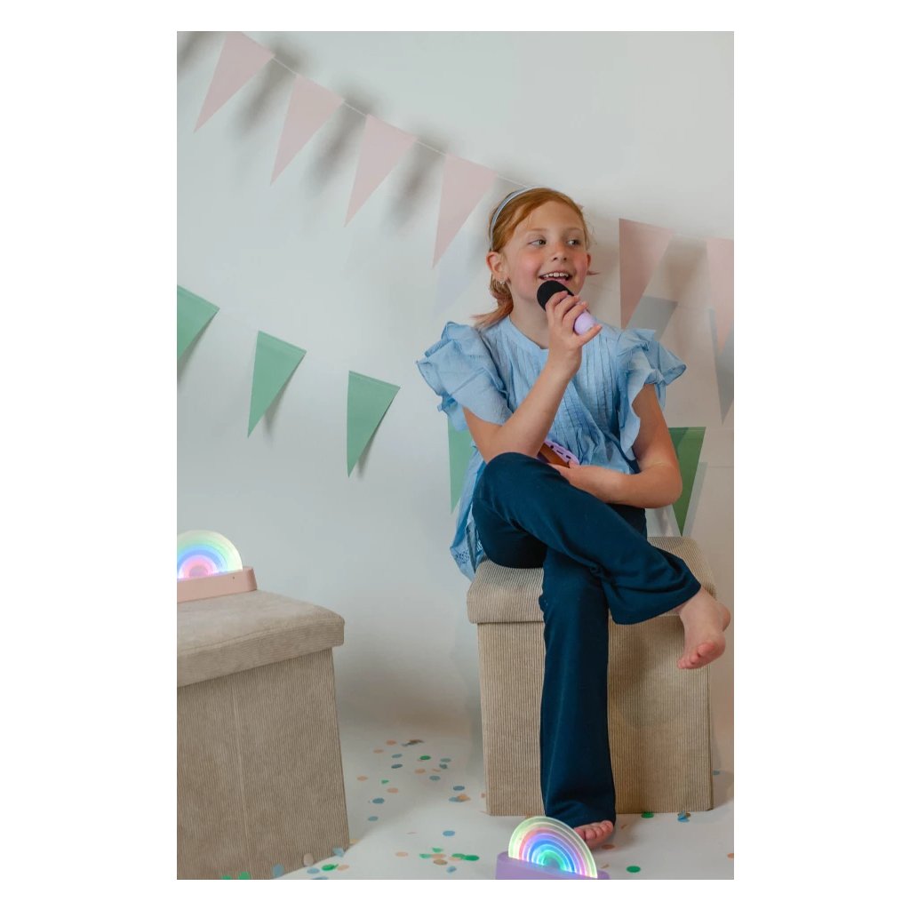 Tančící lampa je vyrobena z kvalitních materiálů, které zaručují její dlouhou životnost a stabilní výkon. Můžete ji napojit přímo do zásuvky nebo používat AA baterie, což poskytuje flexibilitu při jejím umístění. Růžová barva lampy se perfektně hodí k Lalarmu karaoke setem a vytvoří tak živý taneční parket plný barev a světla.