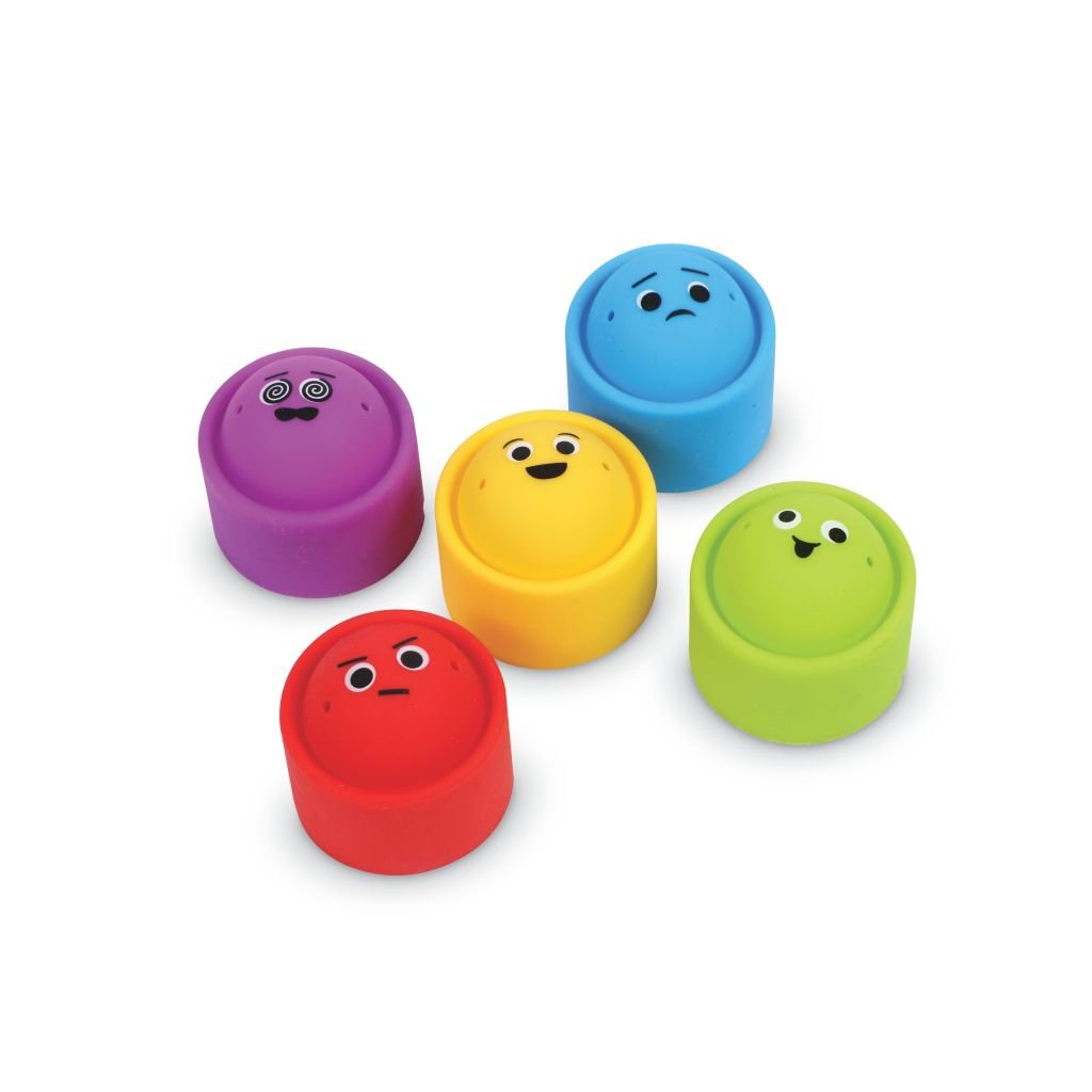 Duha emocí propojuje oblíbený pop-it efekt s výukou emocí. Každá část duhy má unikátní barvu a odpovídající emoční výraz – radost, smutek, hněv, překvapení či nervozitu. Děti si mohou jednotlivé části „vybublávat“ a současně mluvit o svých pocitech.
