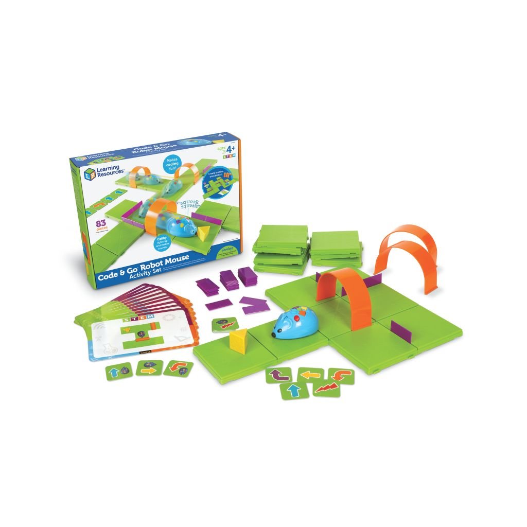 Robotická myška Code & Go patří mezi nejčastěji používané pomůcky pro seznámení dětí s programováním. Děti si postaví vlastní trasu, pomocí karet naplánují pohyb myšky a sledují, zda se dostane do cíle.