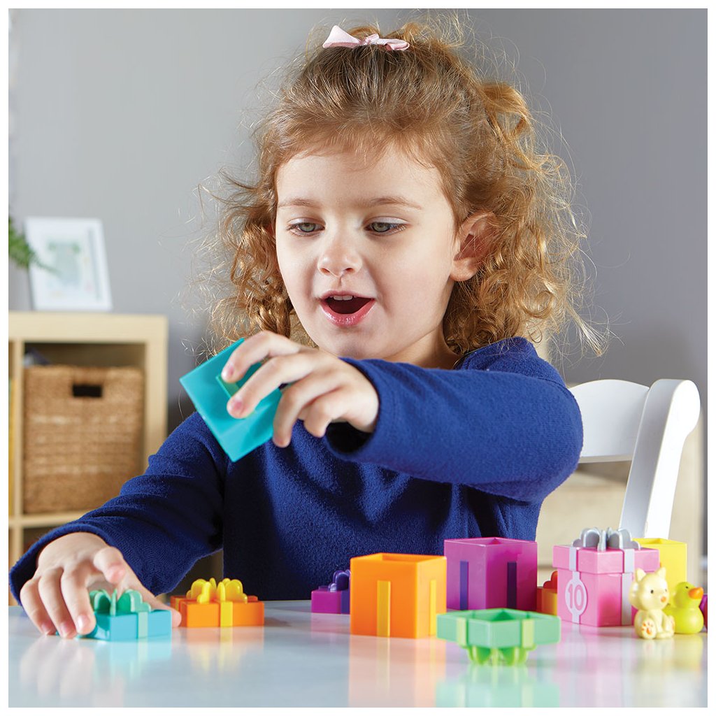 Counting Surprise Party™ od značky Learning Resources staví učení na momentu překvapení. Děti postupně otevírají očíslované krabičky a objevují malé předměty, které mohou třídit, počítat nebo zapojit do fantazijní hry.