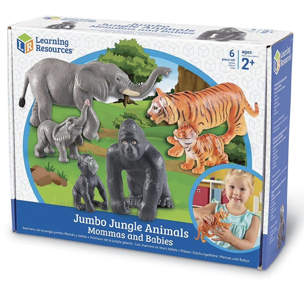 Láska v divočině! Sada Jumbo Jungle Animals obsahuje 3 dvojice zvířecích maminek a jejich roztomilých mláďat (sloni, tygři a gorily). Tyto obří, nezničitelné figurky jsou navrženy pro nejmenší děti od 2 let, které se hravou formou učí o rodině, blízkosti a přírodě.