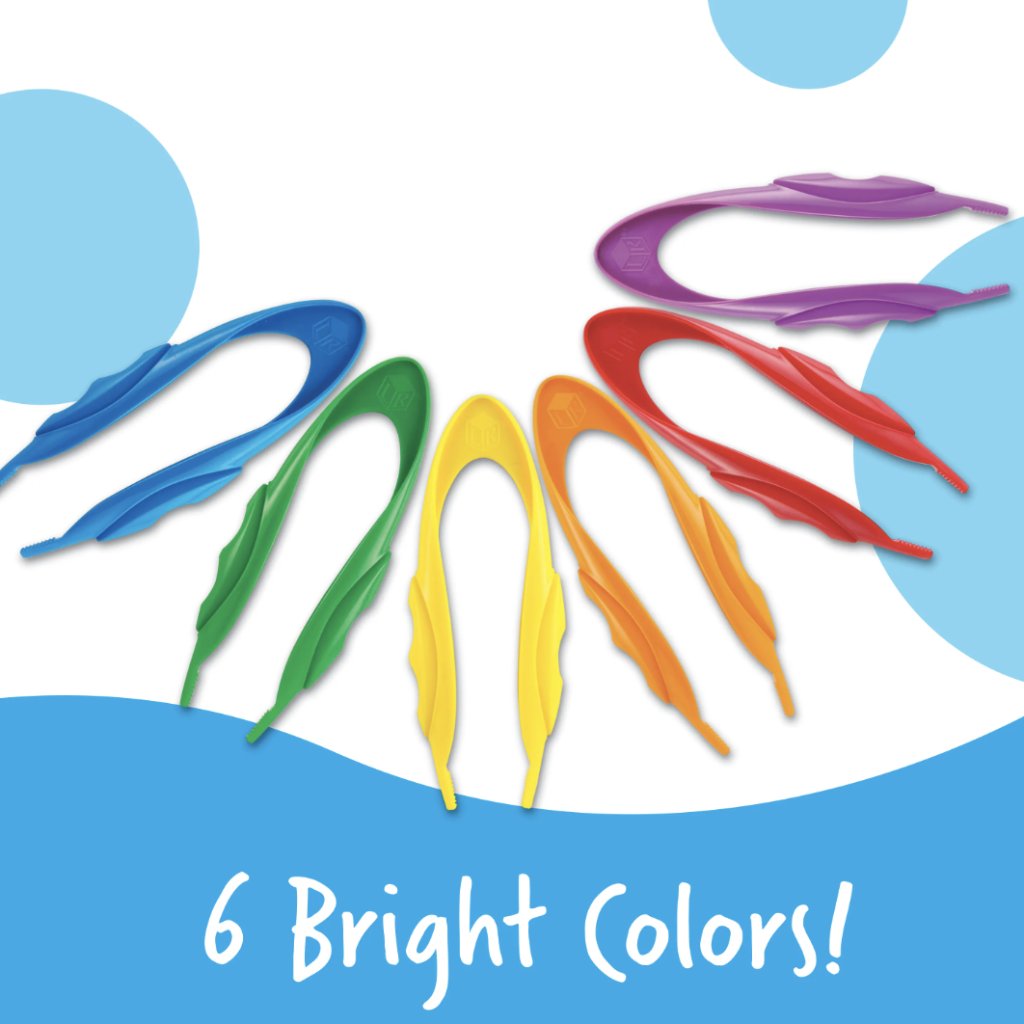 Velké výukové pinzety pro děti, které rozvíjejí jemnou motoriku a přípravu na psaní.