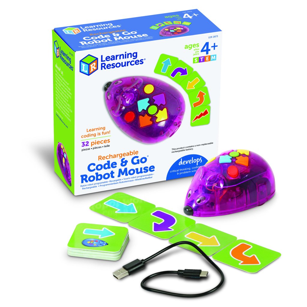 🐭 Dobíjecí robotická myš Jack svítí, vydává zvuky a nabízí dvě rychlosti pohybu. Ovládá se pomocí barevných tlačítek, která odpovídají programovacím kartám – díky tomu je učení intuitivní a snadno pochopitelné i pro menší děti. V balení najdete také USB kabel pro dobíjení.