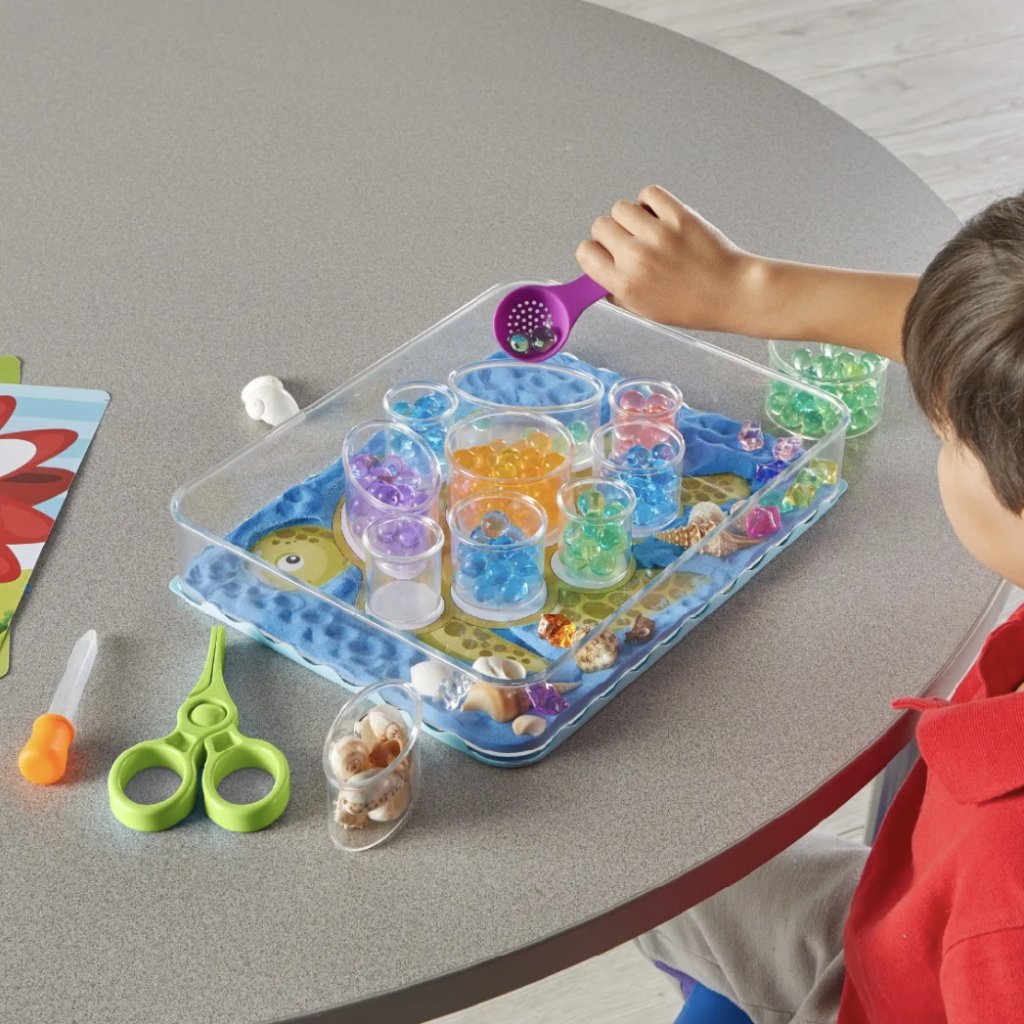 Velký univerzální tác, který umožňuje dětem tvořit, zkoumat a objevovat pomocí senzomotorických aktivit.