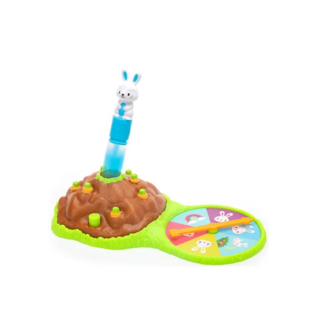 Hra Pop Pop Bunny Hop je určena pro děti, které se učí základní barvy a čísla. Králíček je umístěn mezi mrkvičky a po stisknutí vyskočí. Děti sbírají mrkvičky podle barvy nebo čísla určeného herním plánem.
