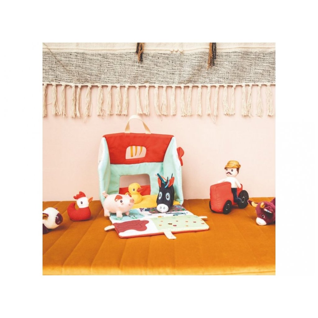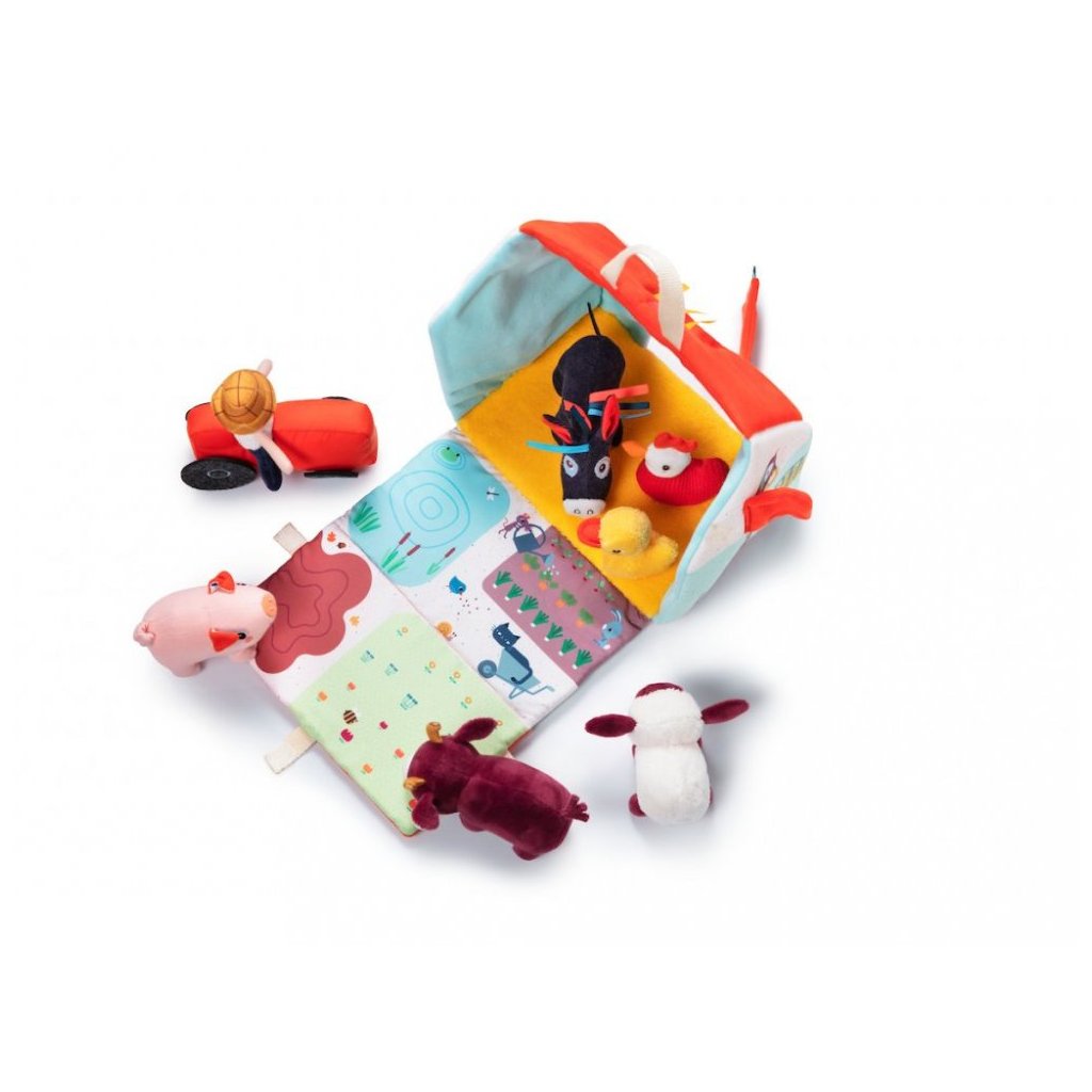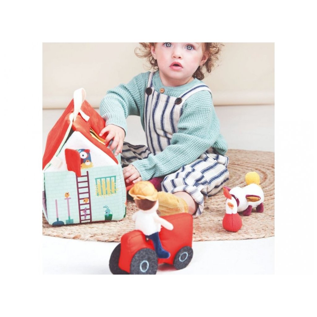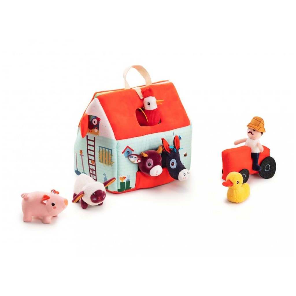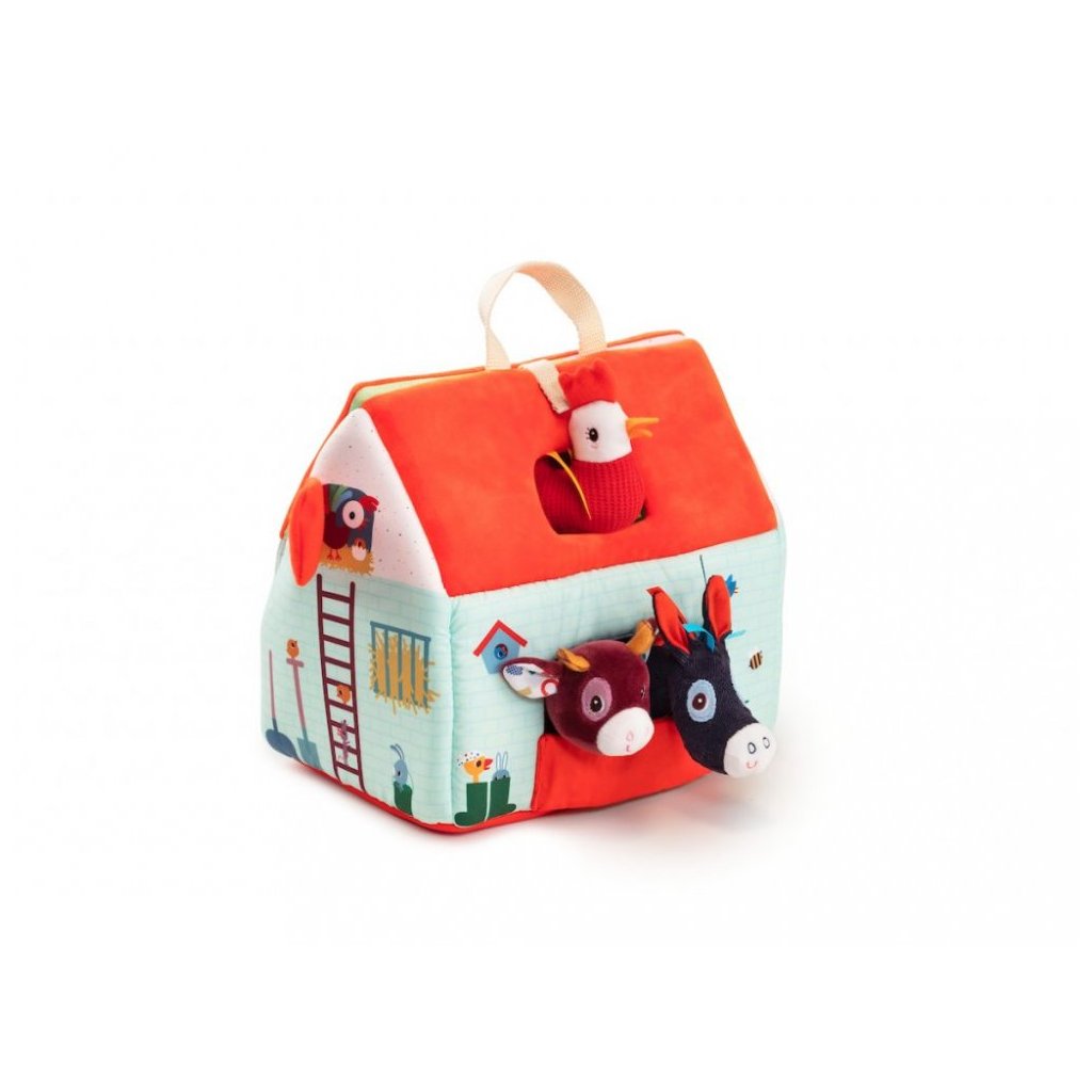 Domeček má rukojeť, děti ho tak mohou jednoduše přenášet z místa na místo. Stačí otevřít dveře a už se mohou odvíjet veselé příběhy farmáře a jeho zvířátek. Pro nejmenší děti je tato hračka jako cesta za poznáním.