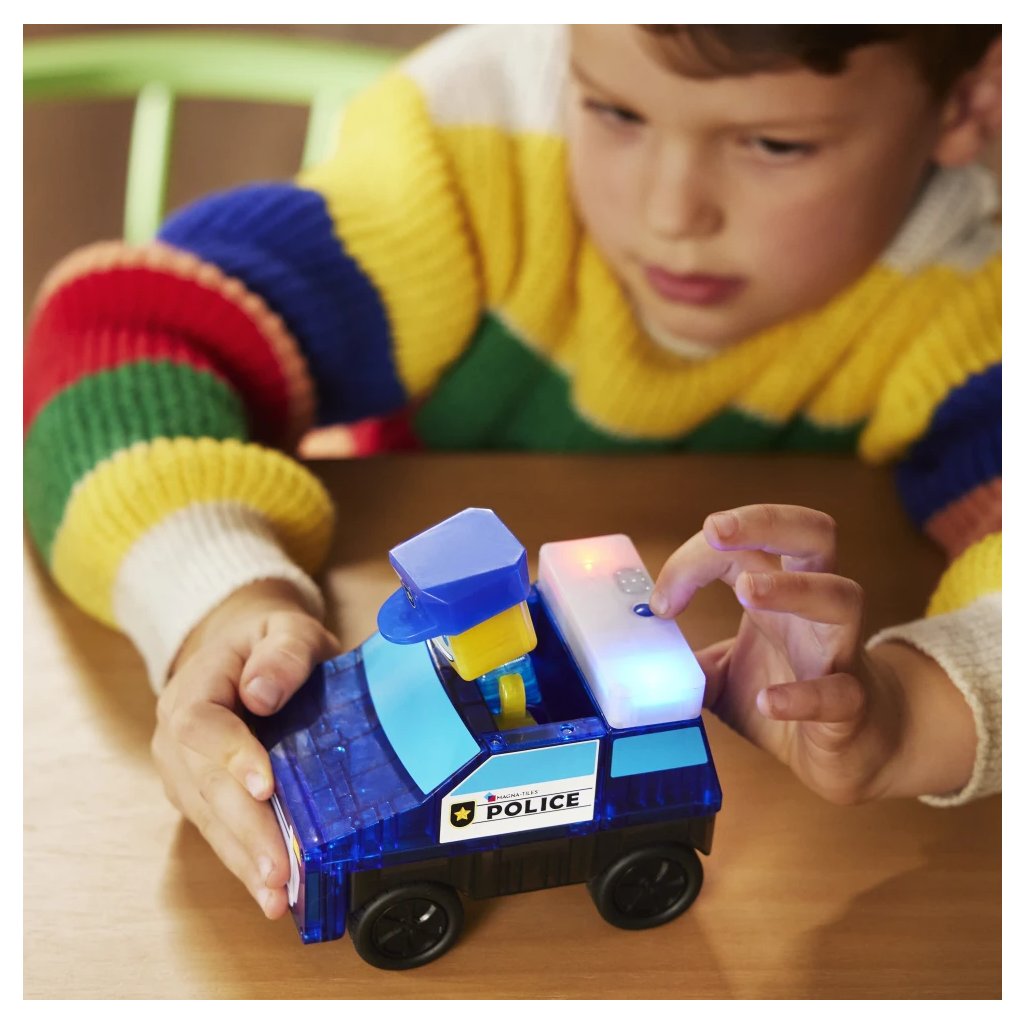 Postav si vlastní policejní stanici, vydej se do akce a zachraňuj den. Tato magnetická stavebnice přináší dětem svět plný dobrodružství, fantazie a napětí – kde každé volání o pomoc má šťastný konec.