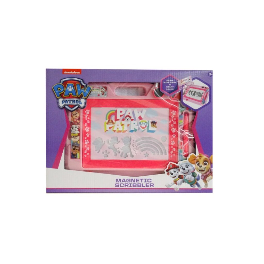 Magnetická tabulka na kreslení Tlapková patrola – součástí balení je magnetická tabulka, magnetické pero na kreslení, 2× magnetické razítko a jedna šablona.