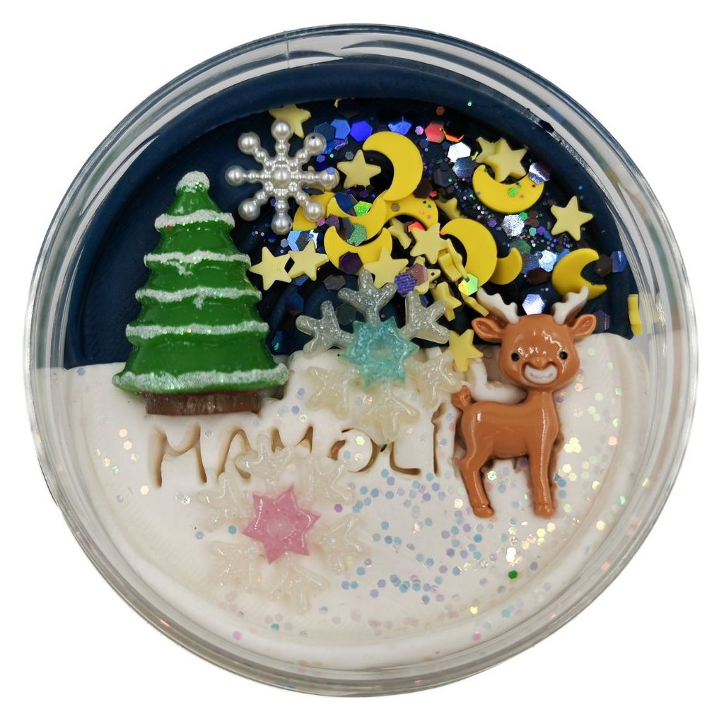 250g měkkoučké domácí dvoubarevné modelíny, třpytky, konfety, 5ks dekorací - sobík, stromeček, 3 vločky.