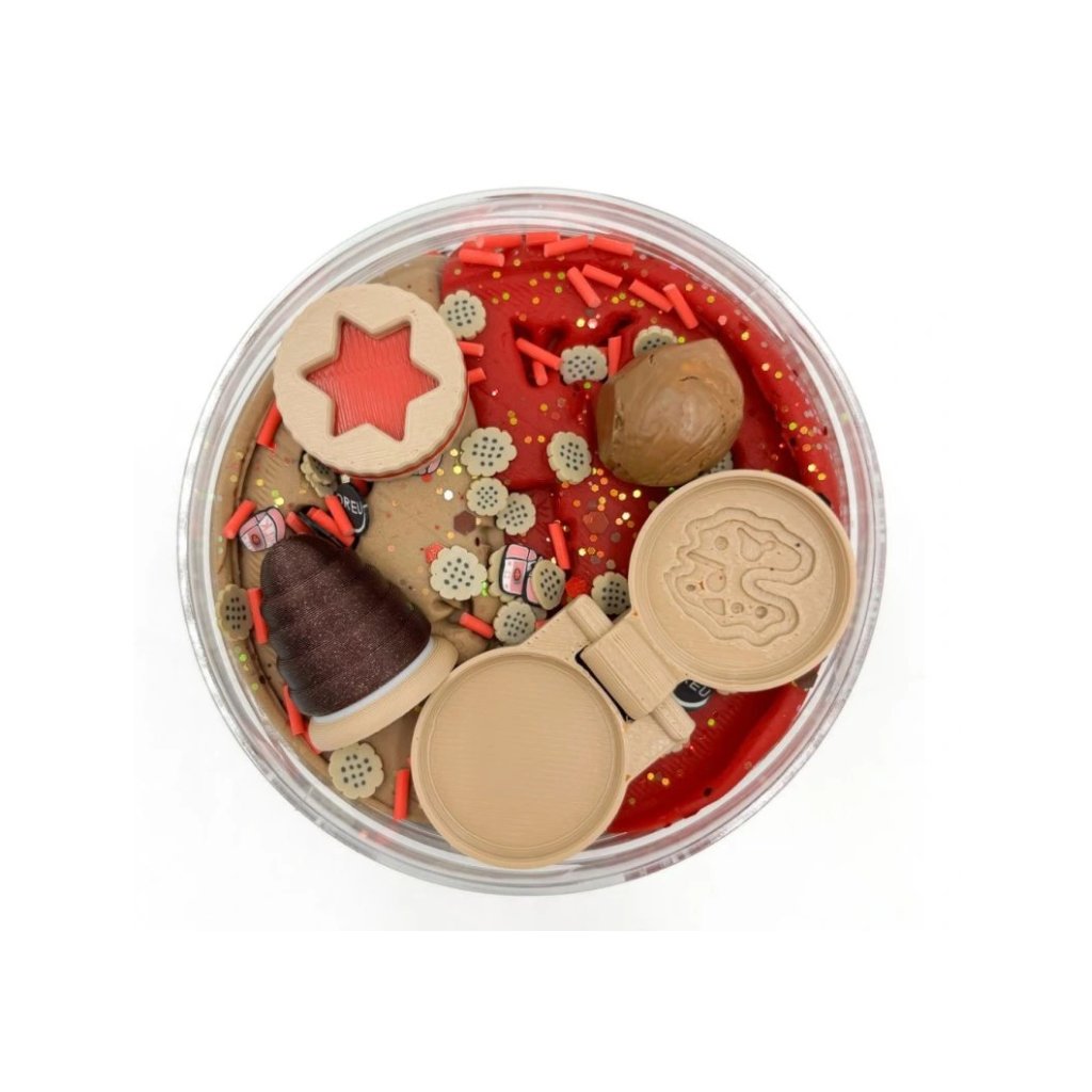 250g měkoučké dvoubarevné domácí modelíny, třpytky, konfety, eco vosí úl, eco linecké cukroví, oříšek, eco tvořítko na cukroví