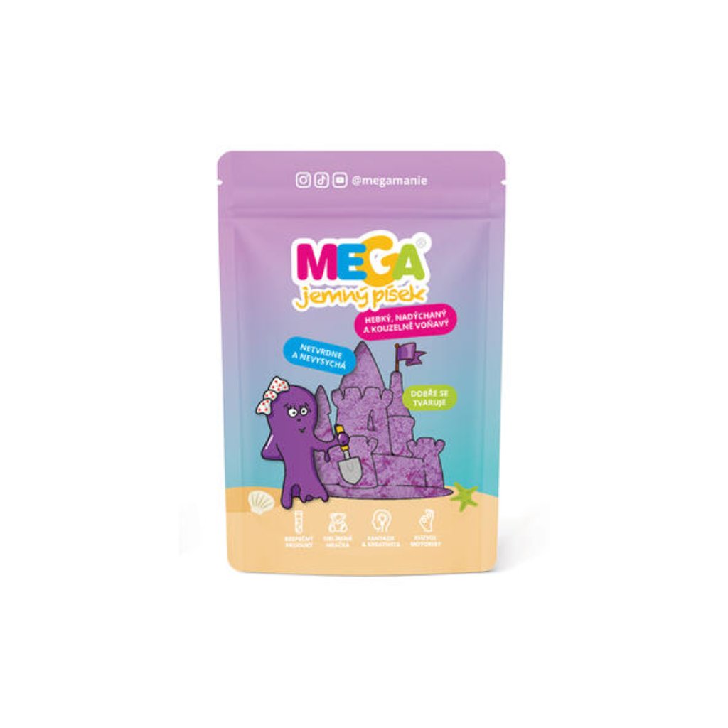 MEGA jemný písek je měkká modelovací hmota s nadýchanou „fluffy“ strukturou, která nevysychá a snadno se tvaruje. Ideální senzorická hračka pro tvoření, modelování a uklidňující hru dětí.