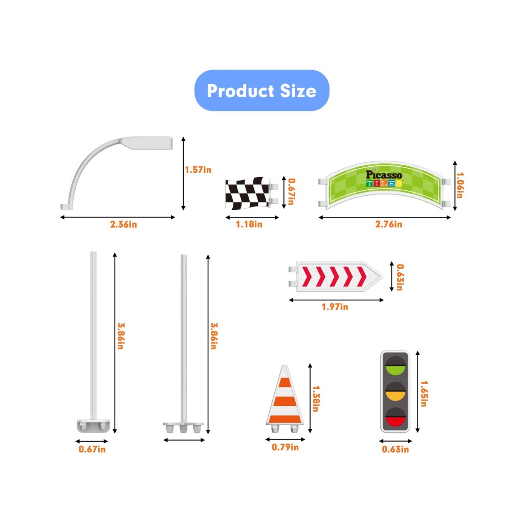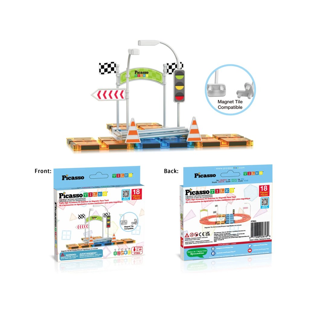PicassoTiles Doplněk závodní dráhy: dopravní značky a samolepky 18 ks