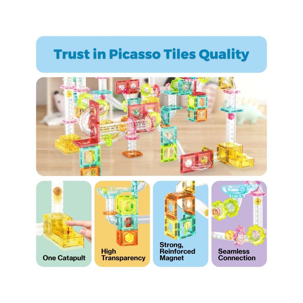 Zažijte nekonečnou zábavu s cestovní sadou PicassoTiles 100 ks Mini Magnetic Tile Marble Run!