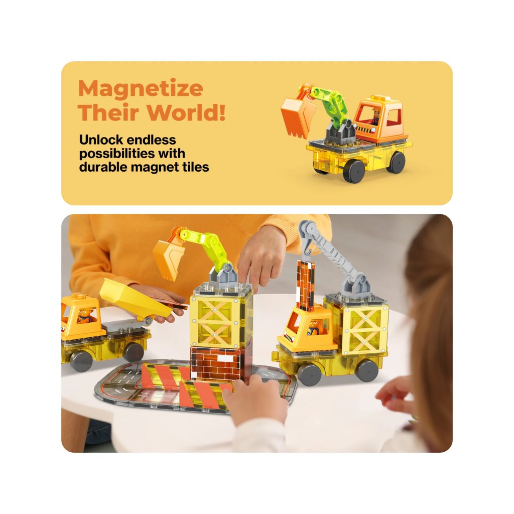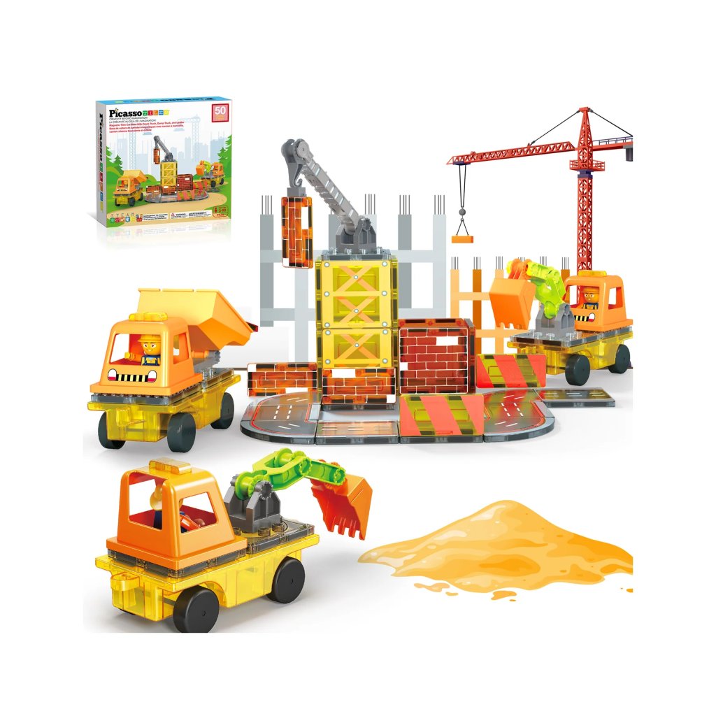 PicassoTiles Magnetická stavebnice 5v1 Stavební vozidla 48 ks
