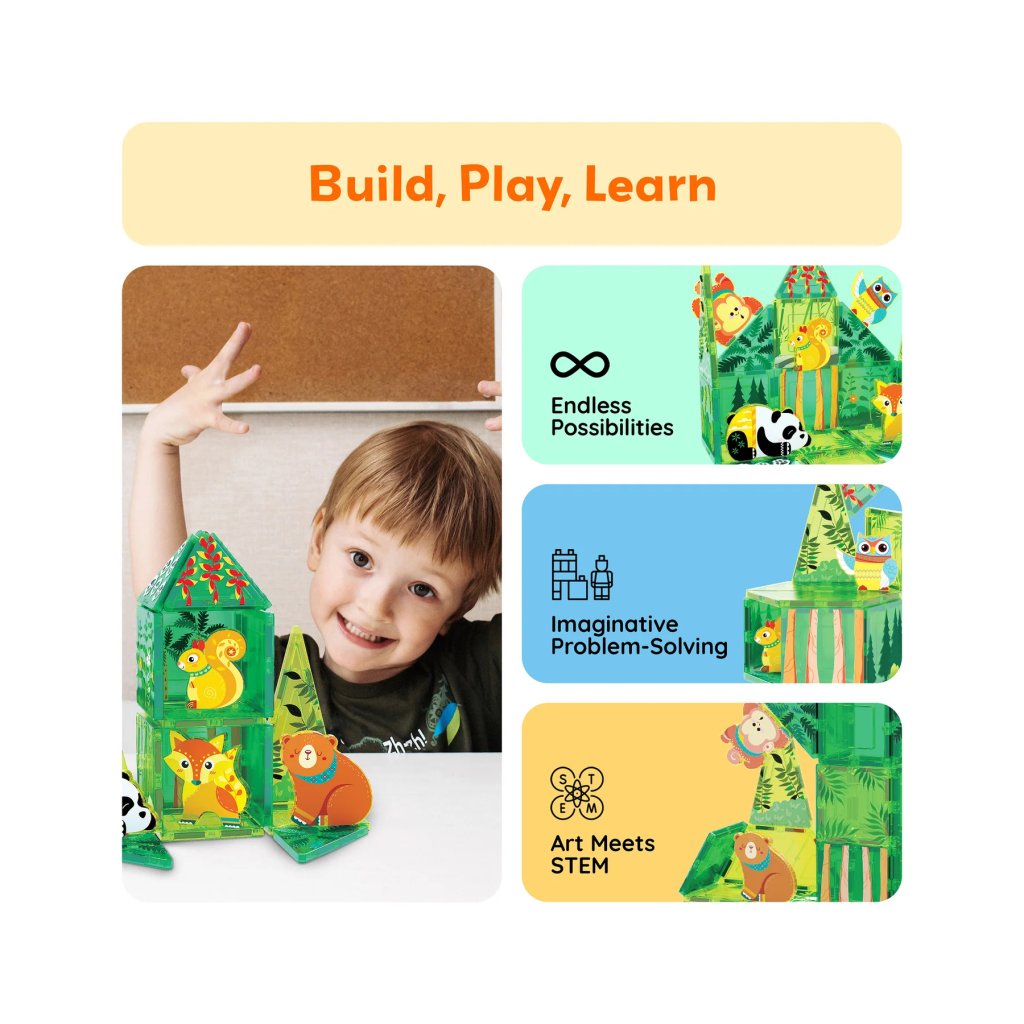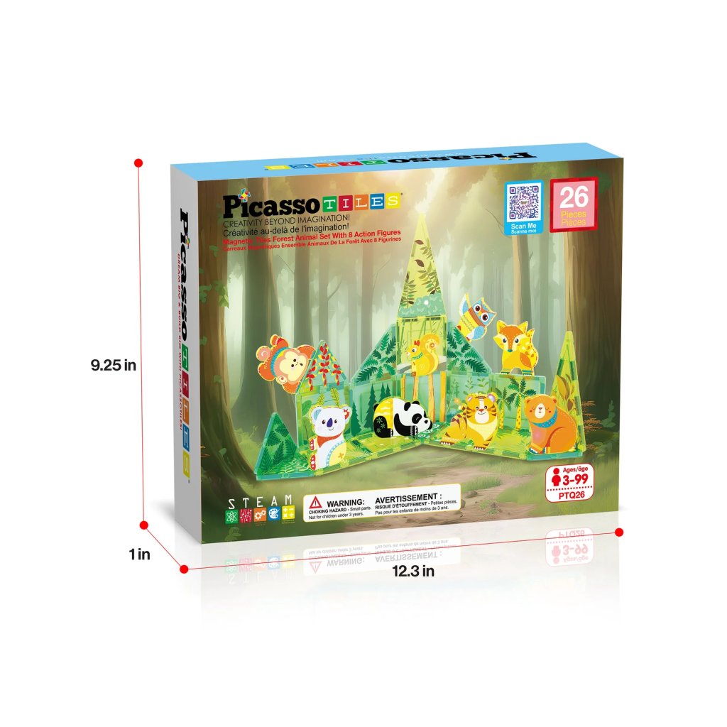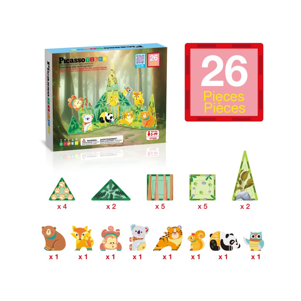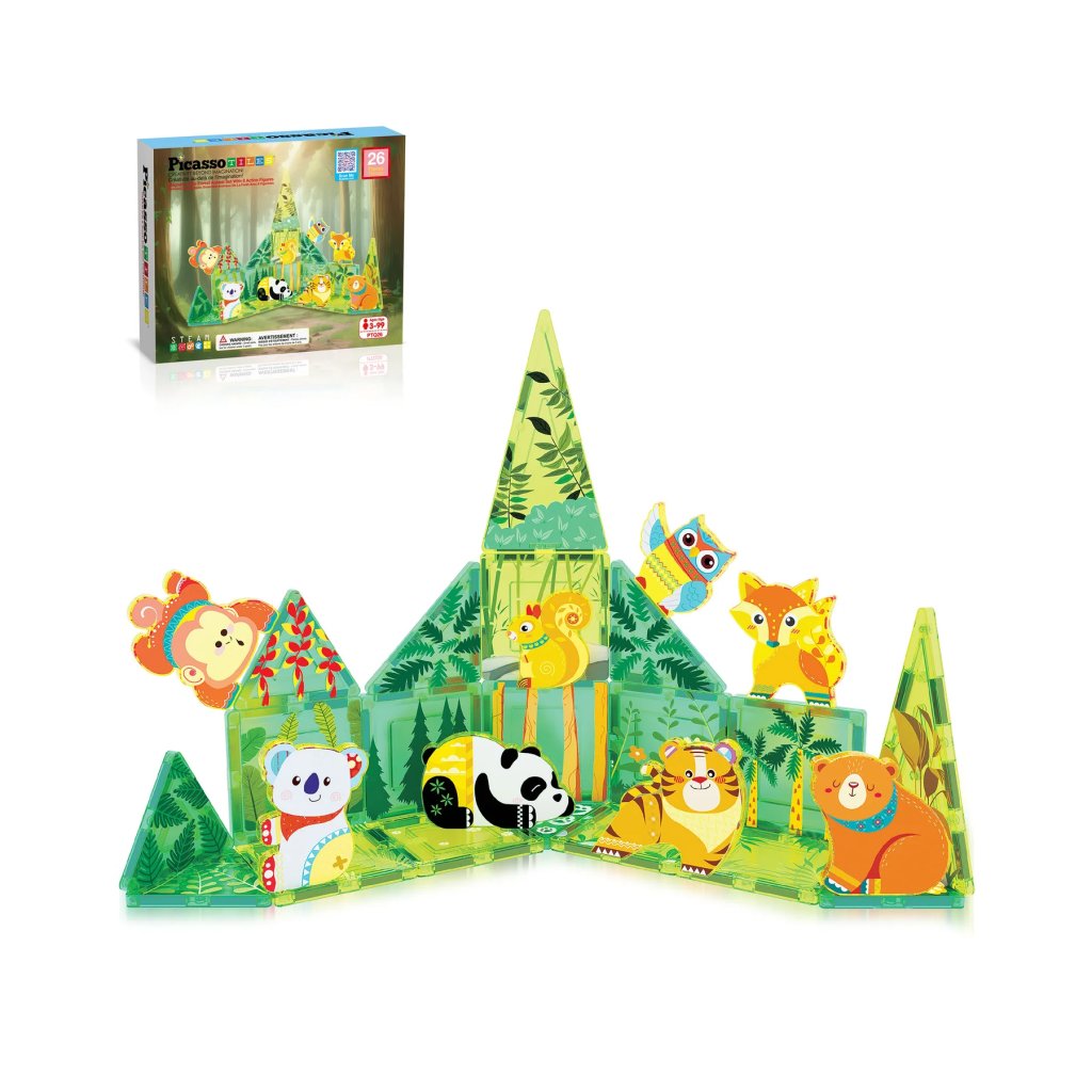 PicassoTiles Magnetická stavebnice Lesní zvířata 26 ks