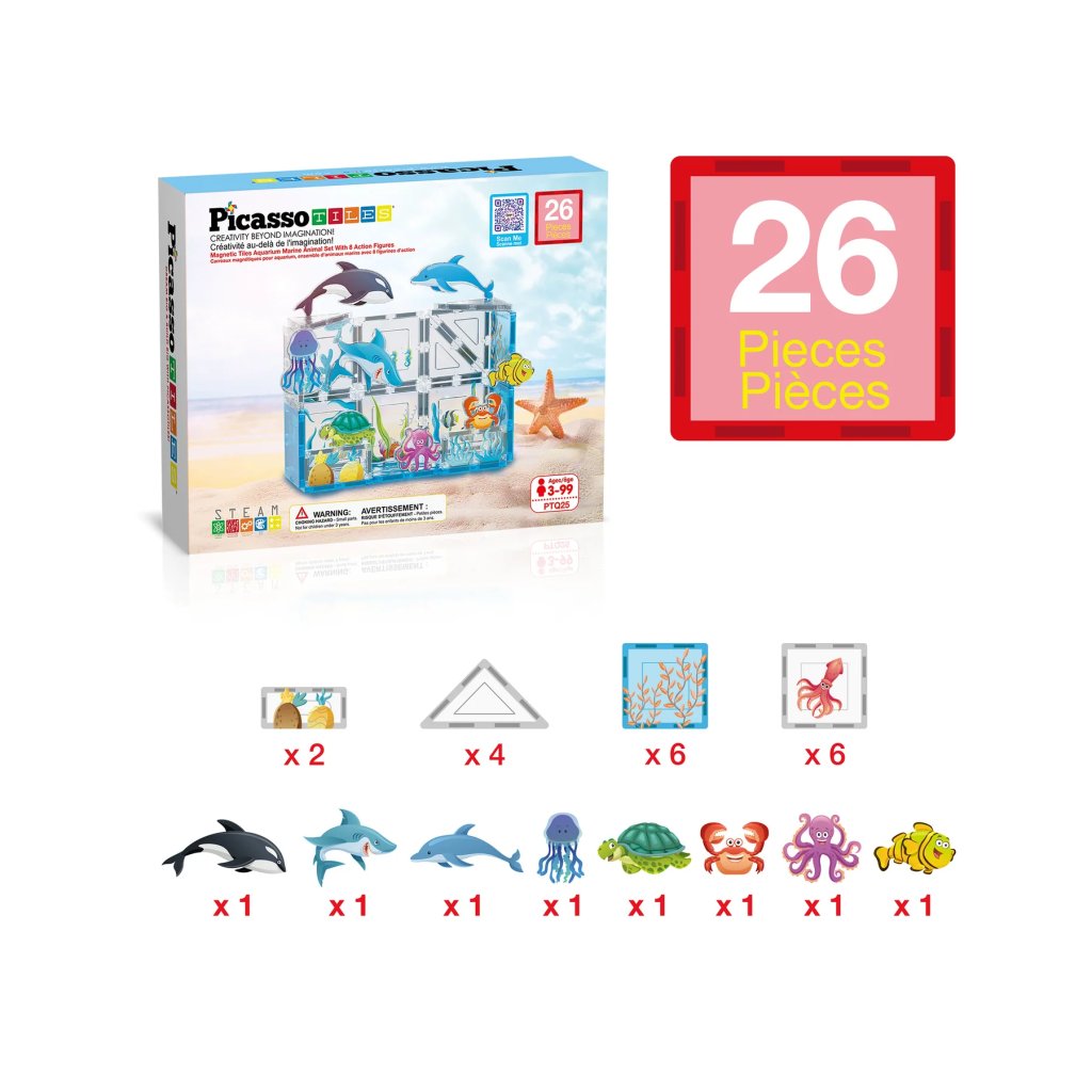 PicassoTiles Magnetická stavebnice Mořský svět 26 ks