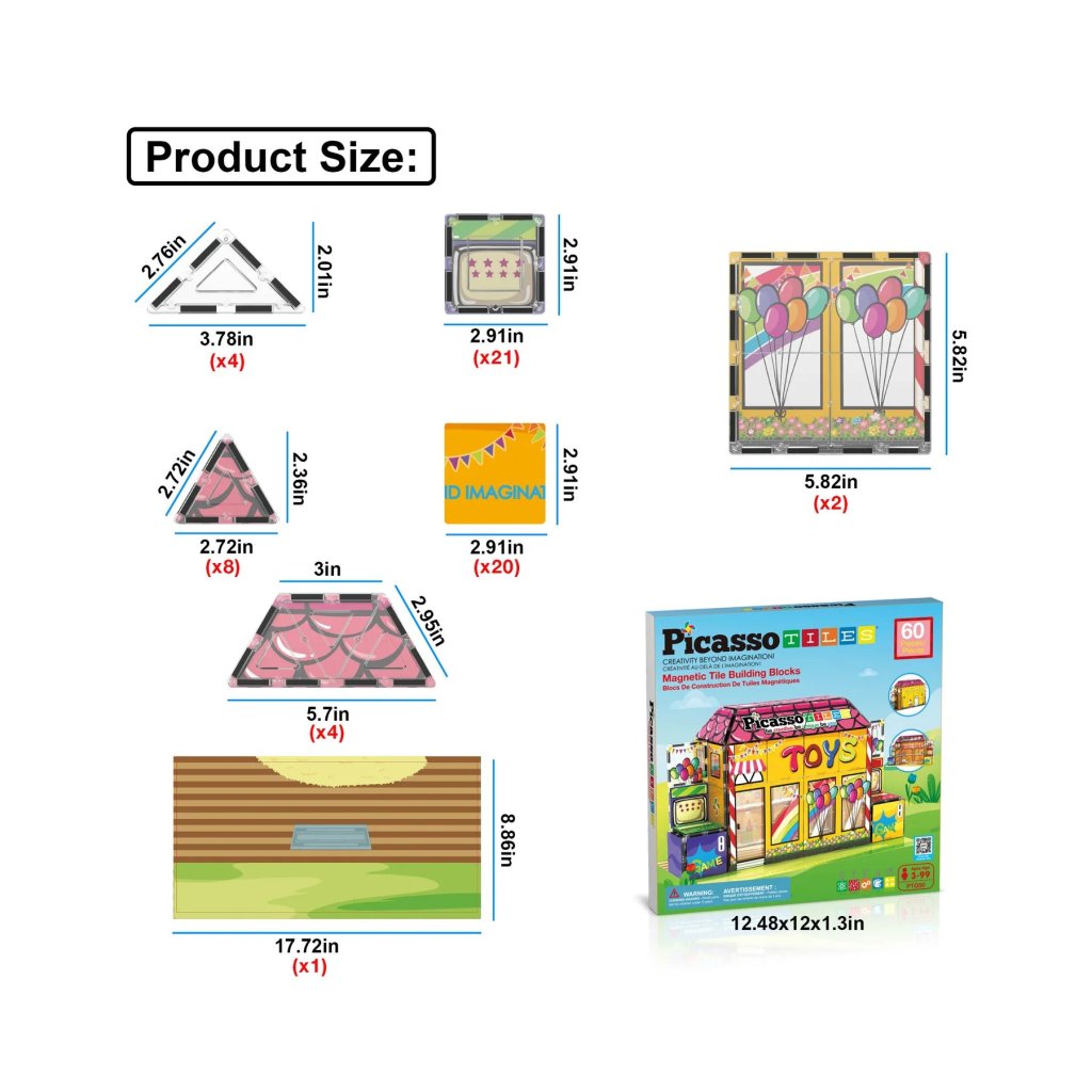 PicassoTiles Magnetická Stavebnice Dobrodruství v Hračkářství 60ks