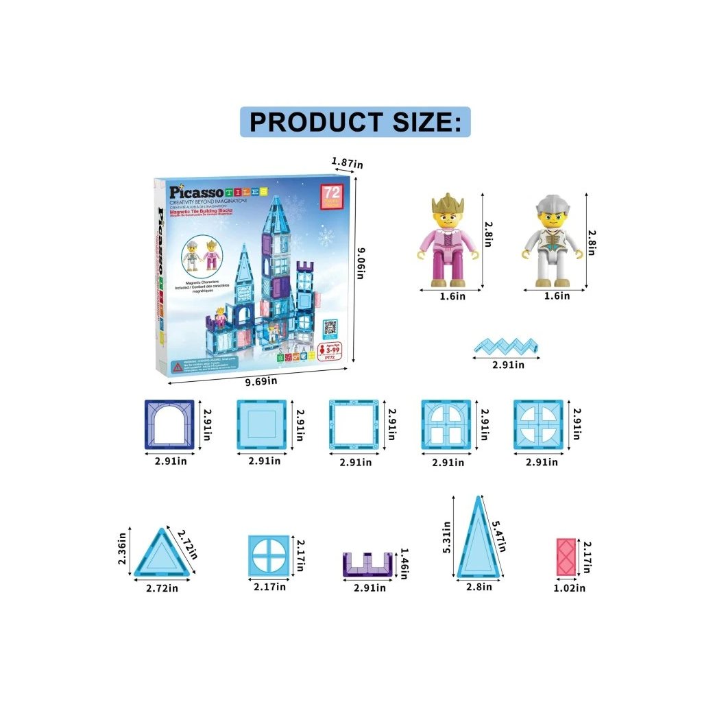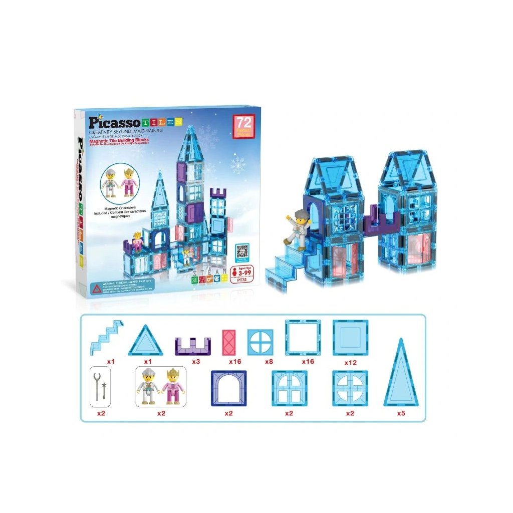 PicassoTiles Magnetický ledový Hrad s Postavičkami 72ks