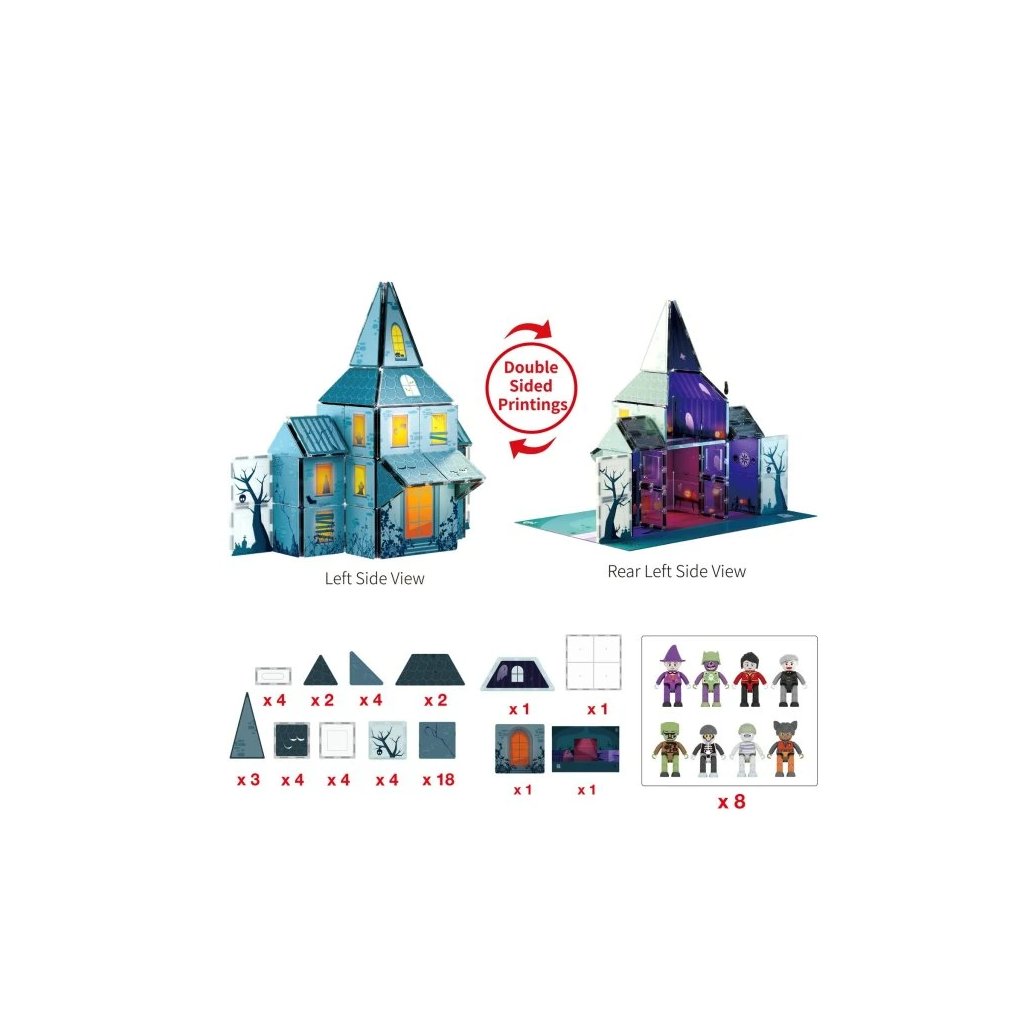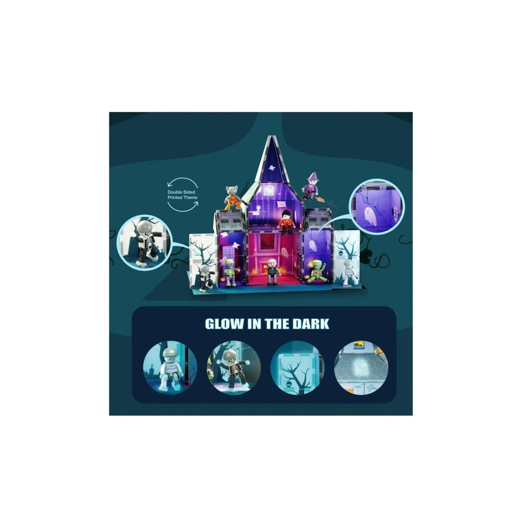 PicassoTiles Strašidelný Dům - Magnetická Stavebnice se Strašidelnými Postavami 57ks