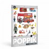 Plakát k dotvoření znovu snímatelnými samolepkami na téma hasiči od francouzské, oceňované značky Poppik.
