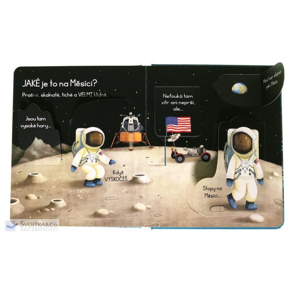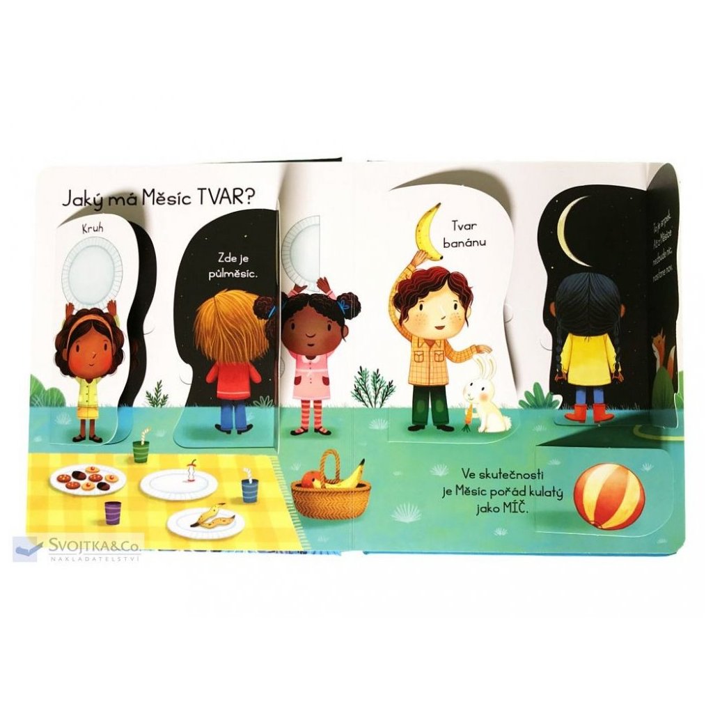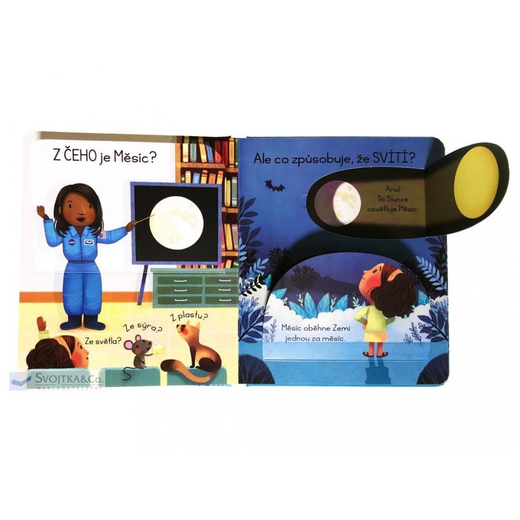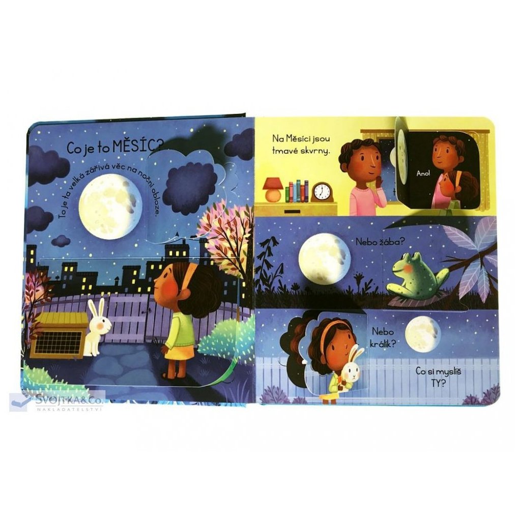 Obloha, obzvlášť ta noční, vždy přitahovala pohledy zvídavých dětí. Pokud vás vaši nejmenší zaskočili otázkou "A co je to vlastně ten Měsíc?", pomoc najdete v této knize. Tato ilustrovaná knížka s odklápěcími okénky obsahuje odpovědi na nejčastější otázky dětí o Měsíci. Je tak skvělým seznámením s nejbližším vesmírným průvodcem naší planety. Děti se v ní dočtou, z čeho se Měsíc skládá, proč svítí a mění tvar, jaké to na povrchu Měsíce je i kolik lidí už se tam podívalo. A kdoví, třeba se mezi čtenáři této knížky skrývá nejeden budoucí kosmonaut...